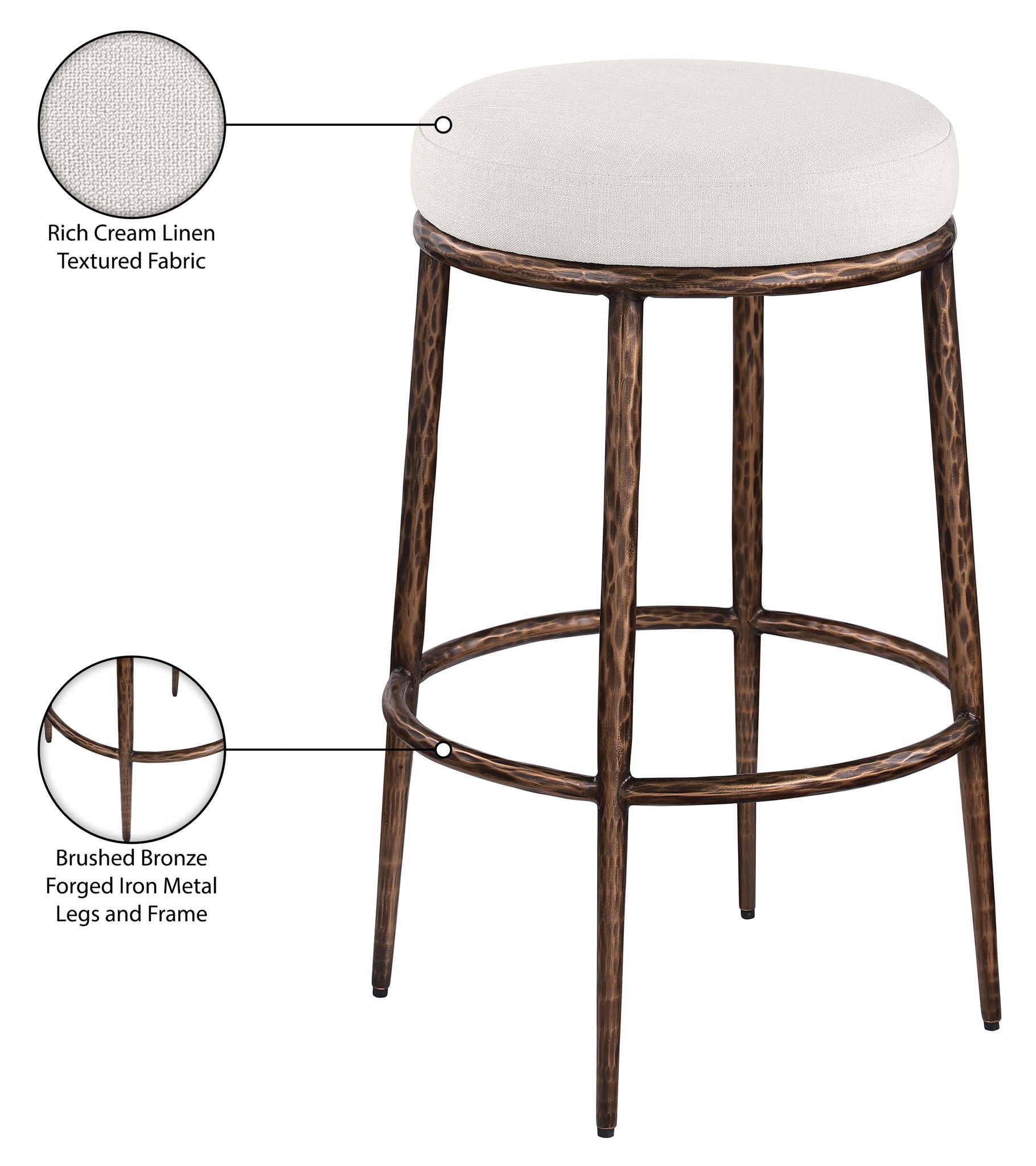 Ferro - Performance Fabric Upholstered Backless Bar Stool - Cream / Antique Bronze