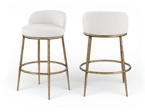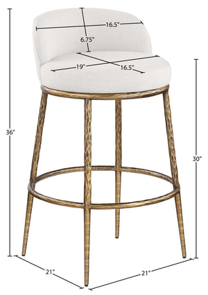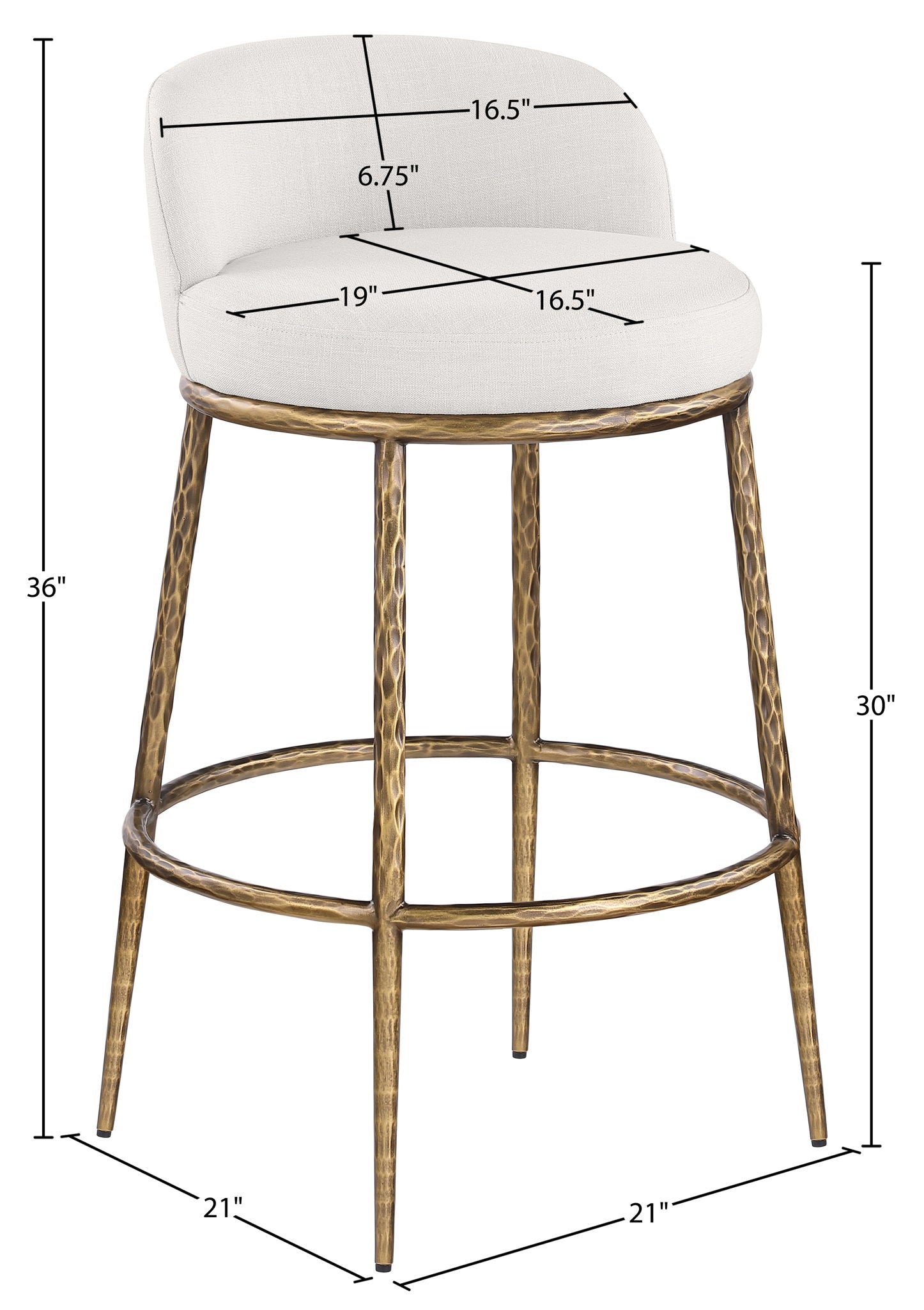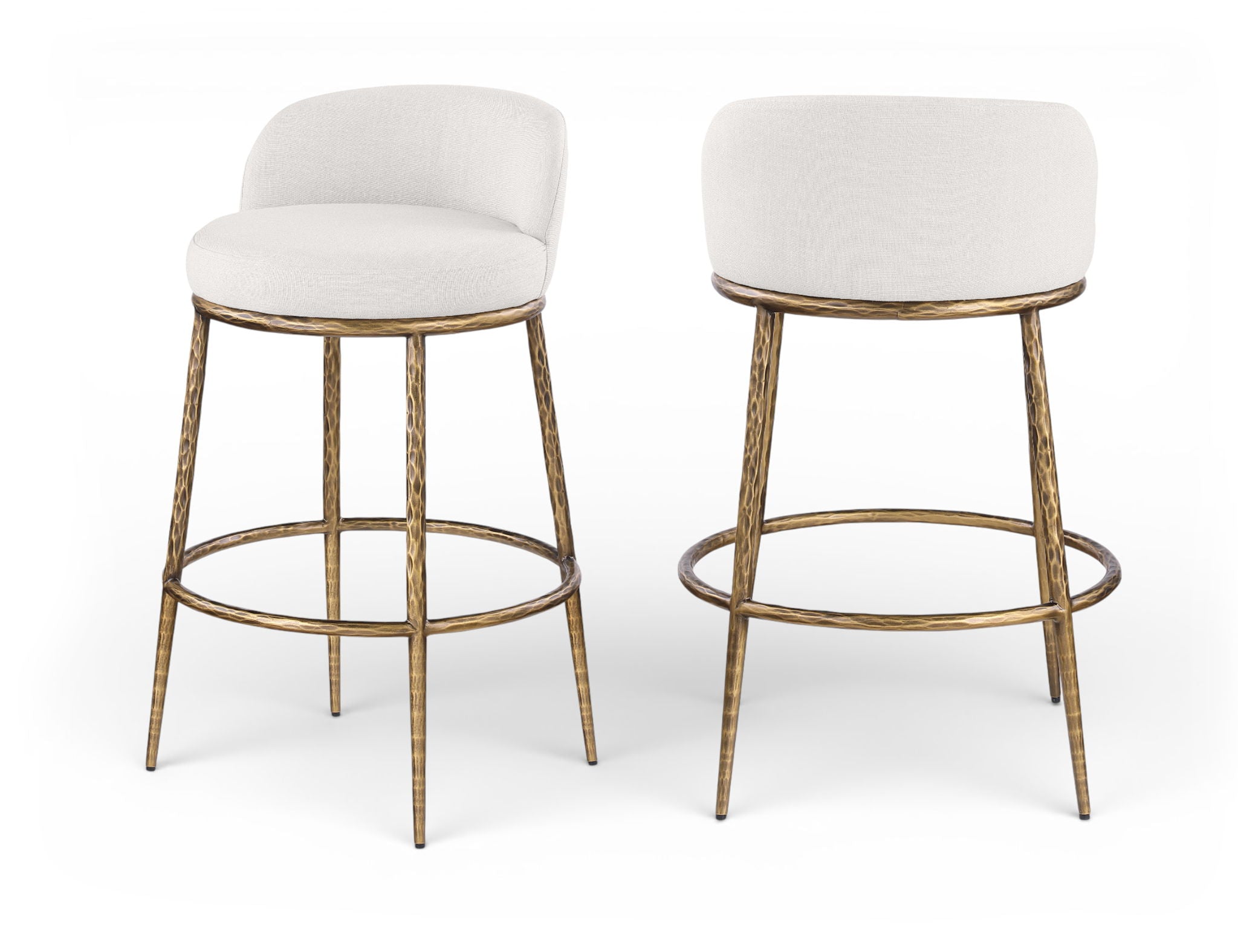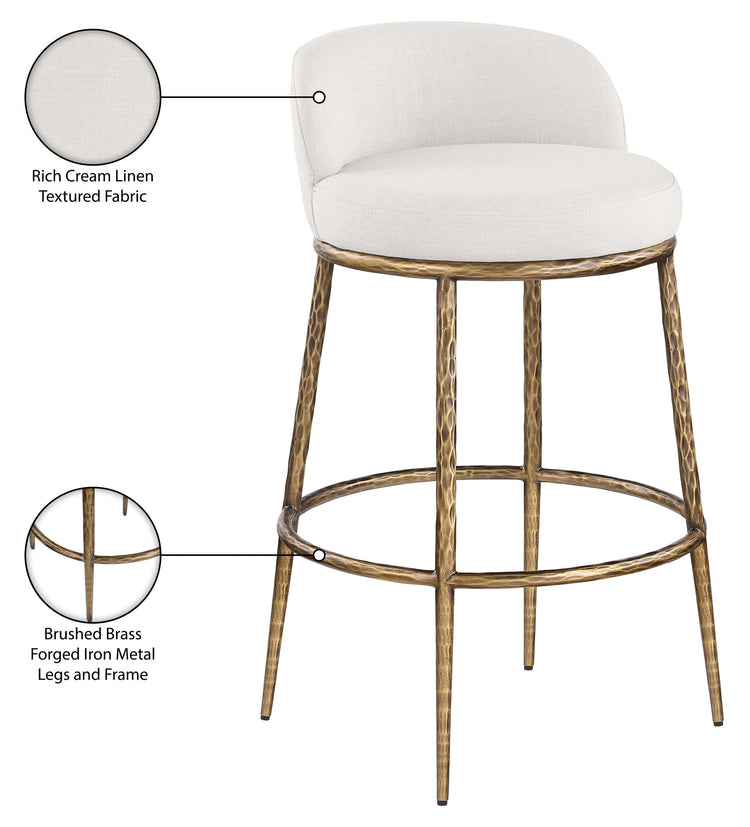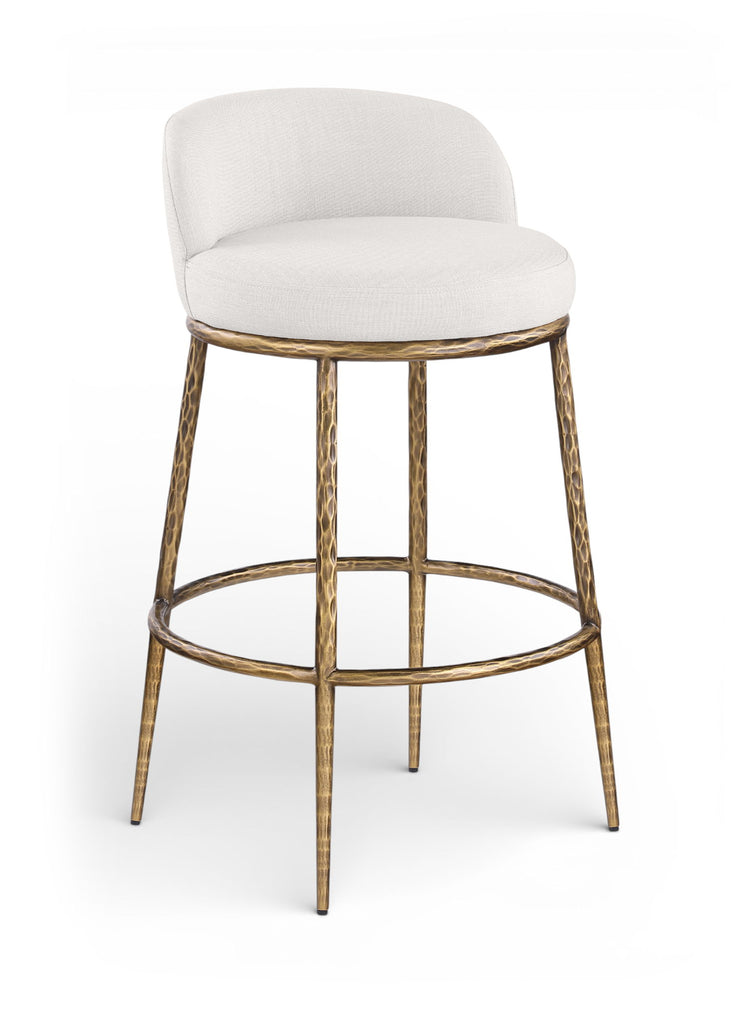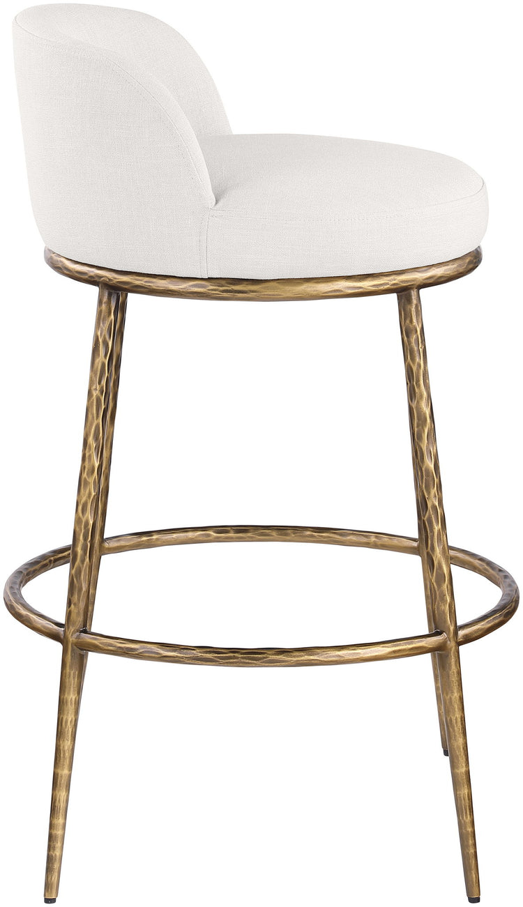Ferro - Performance Fabric Upholstered Bar Stool - Cream / Antique Brass