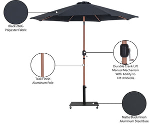 Fiji - Aluminum Patio Umbrella With Square Black And Teak Base - Black