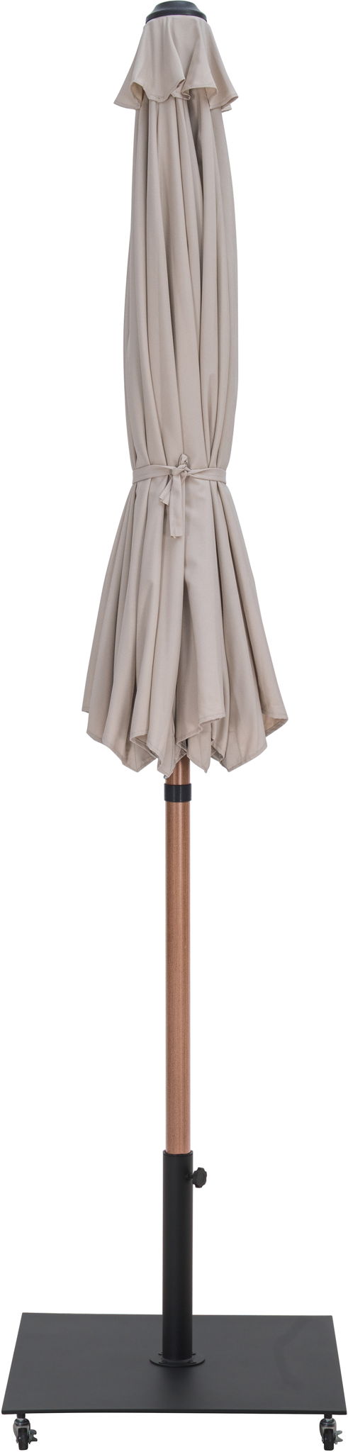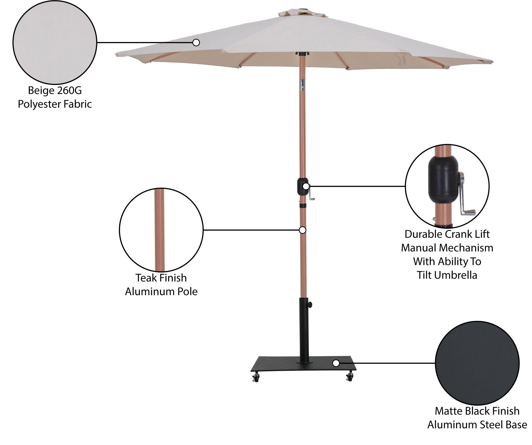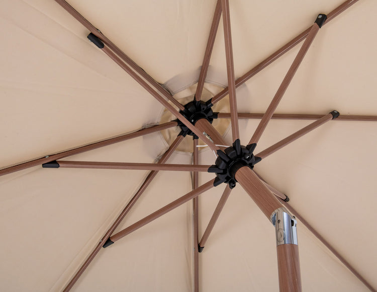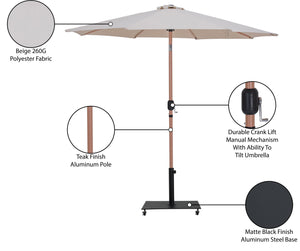 Fiji - Aluminum Patio Umbrella With Square Black And Teak Base - Beige