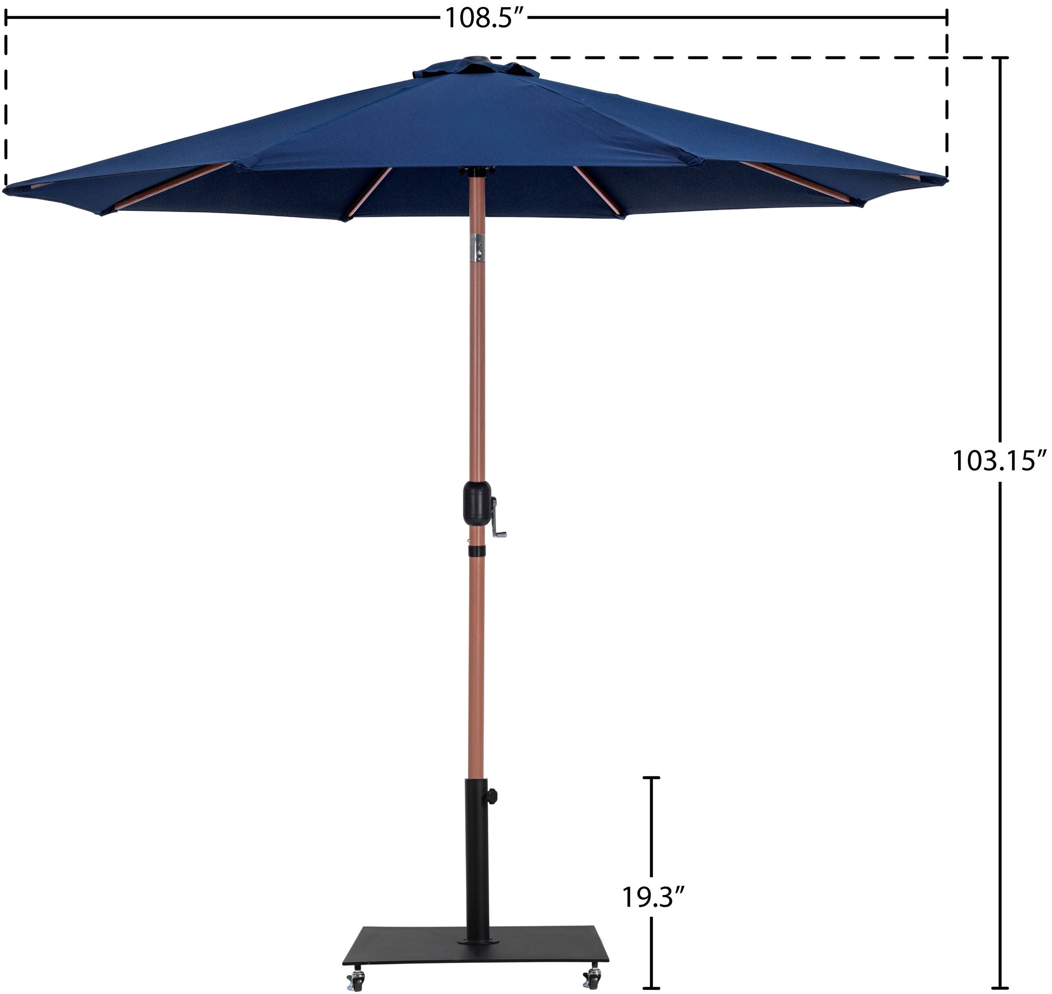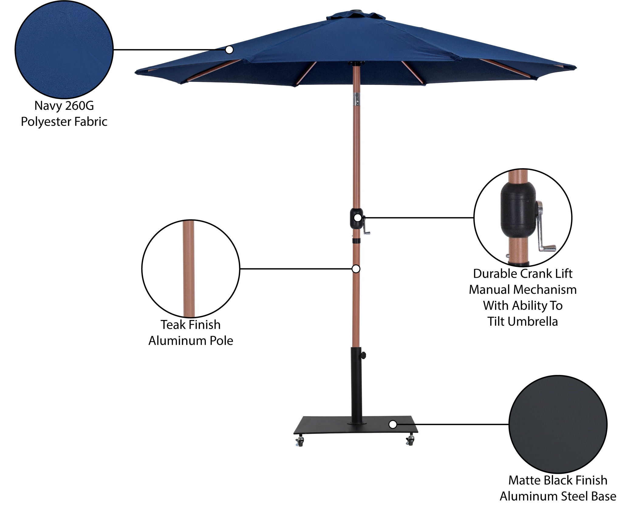 Fiji - Aluminum Patio Umbrella With Square Black And Teak Base - Navy