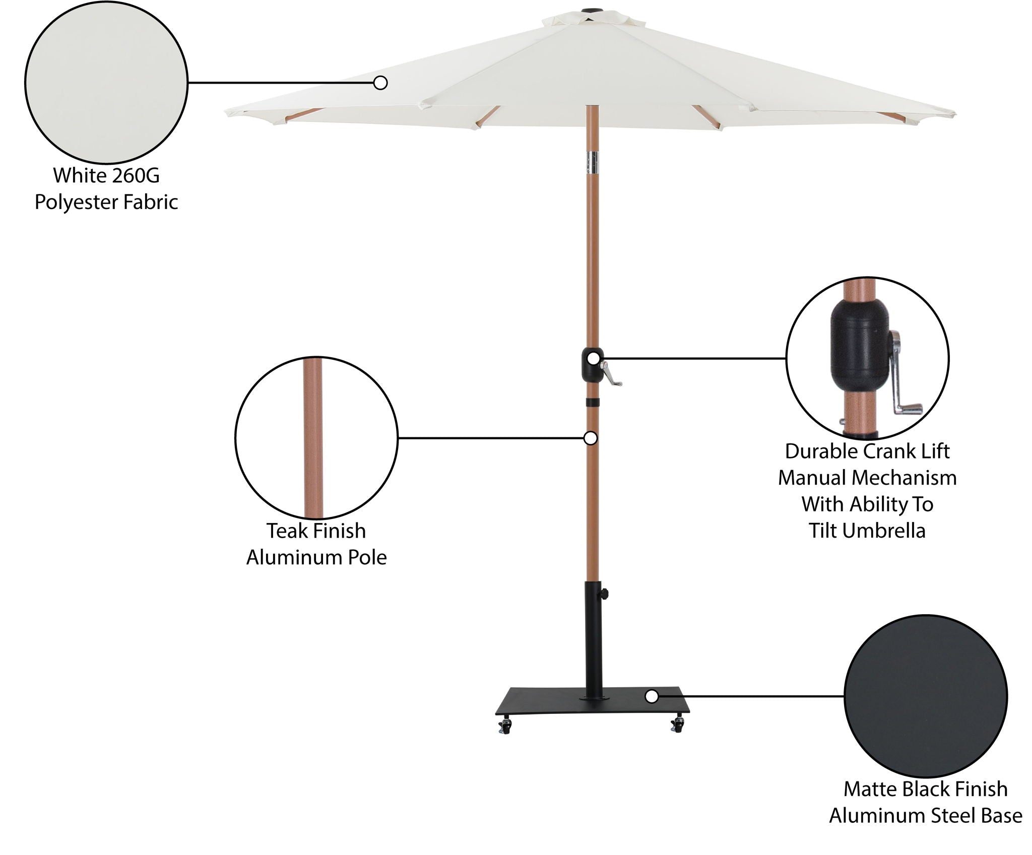 Fiji - Aluminum Patio Umbrella With Square Black And Teak Base - White