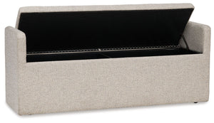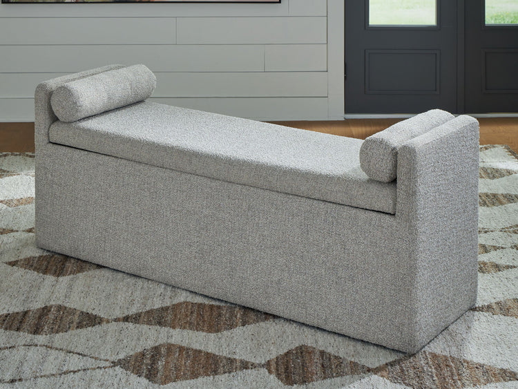 This upholstered dining bench brings a rustic vibe to urban contemporary design. It's a modern approach to everyday function, with storage hidden under the seat. And the bench's neutral color is stunningly simple, allowing it to coordinate seamlessly with your existing decor.