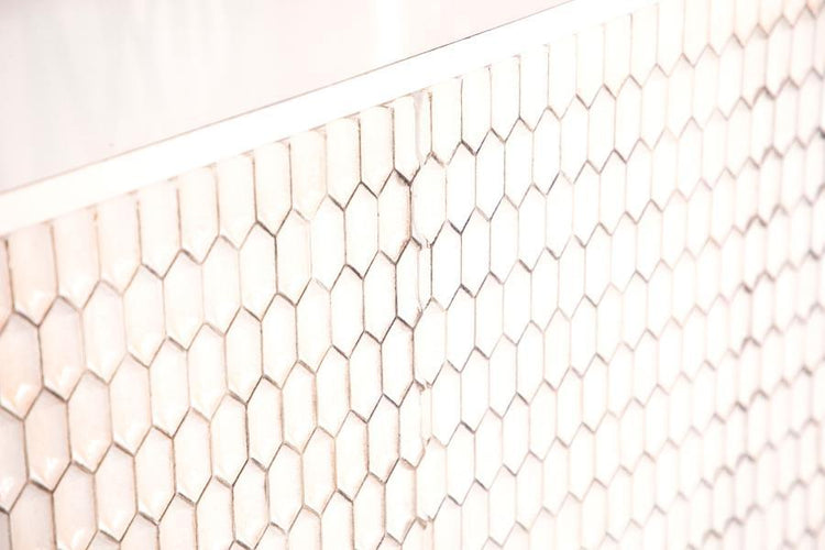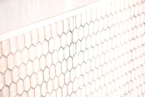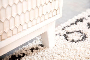- The white finish is enhanced with a striking geometric pattern for visual appeal and texture