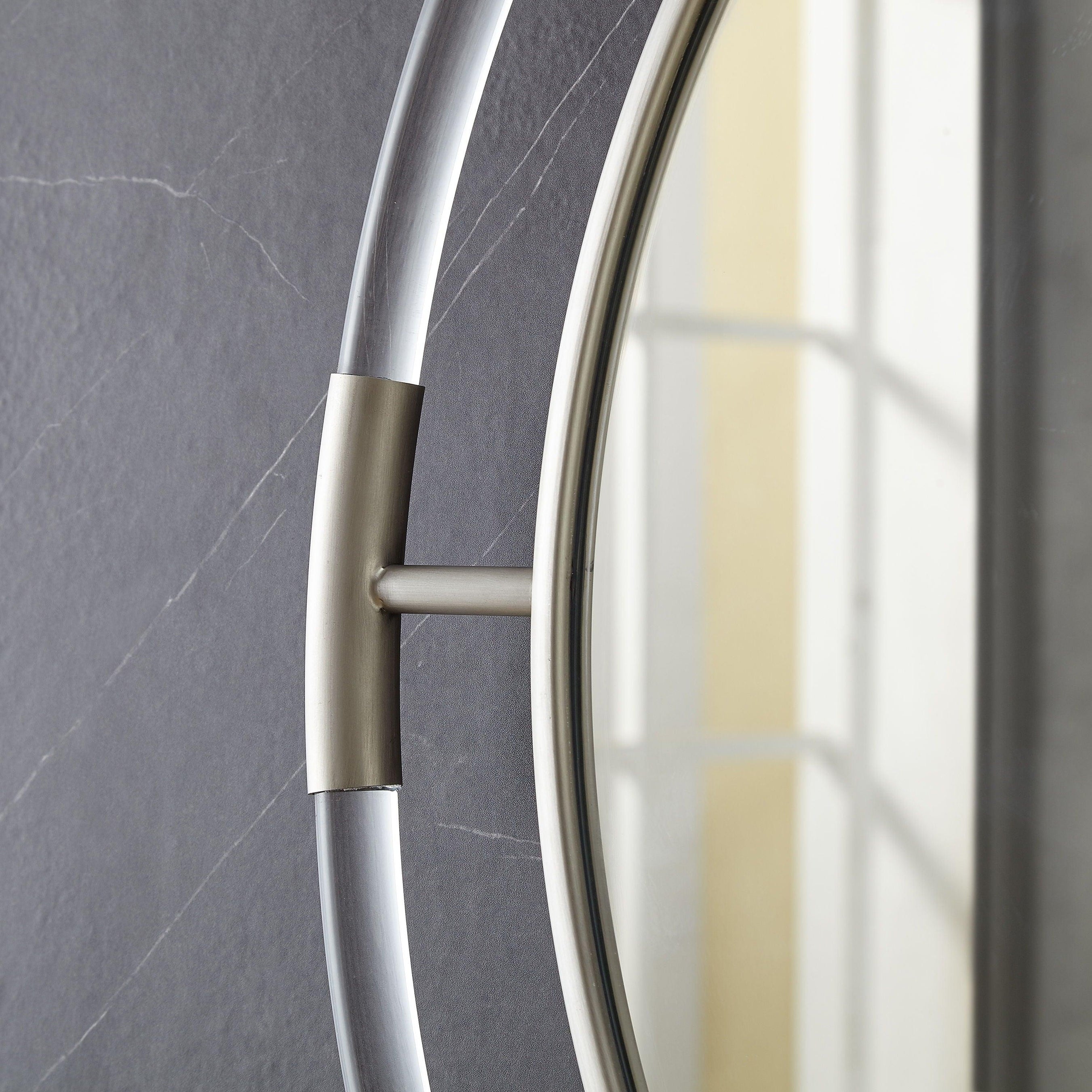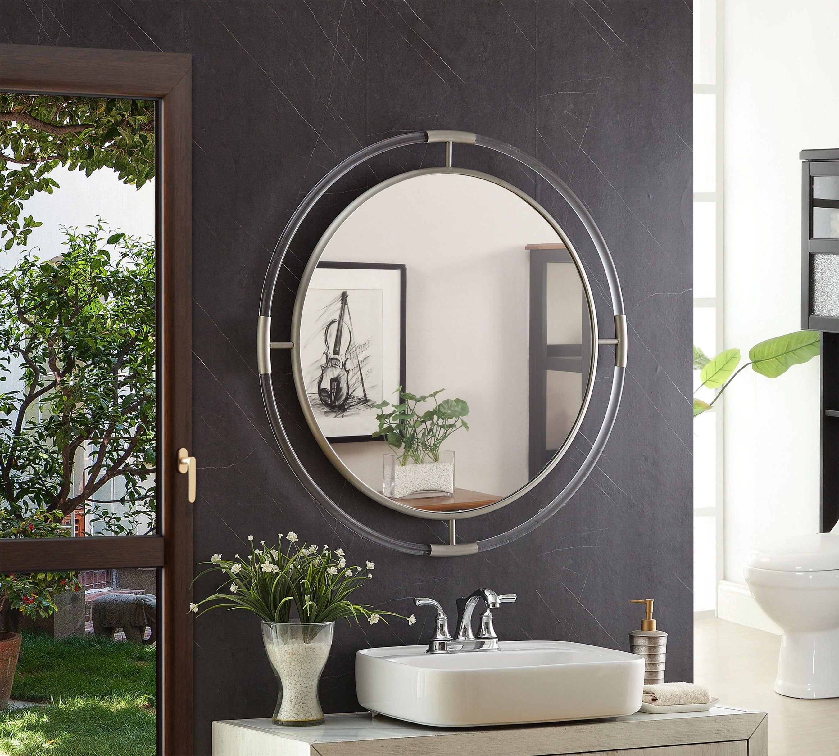 Set the elegance bar high with the addition of this Ghost round mirror to your room. This sophisticated mirror is uber contemporary with its acrylic and brushed design that's nothing short of spectacular from all angles. The large size makes this Ghost mirror a fitting choice for the area above your bathroom sink or dressing area, or add it to a foyer or entryway wall to greet guests in refined style. The mirror comes with all mounting hardware needed for hanging.