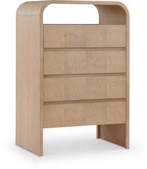 Arched edges, bold geometry, and rich burl wood grain give the brown Giada chest its art deco edge. Layers of oak and ash veneer create a striking visual texture that turns storage into a statement. Built from a mix of solid wood and MDF, it delivers durability wrapped in undeniable style.