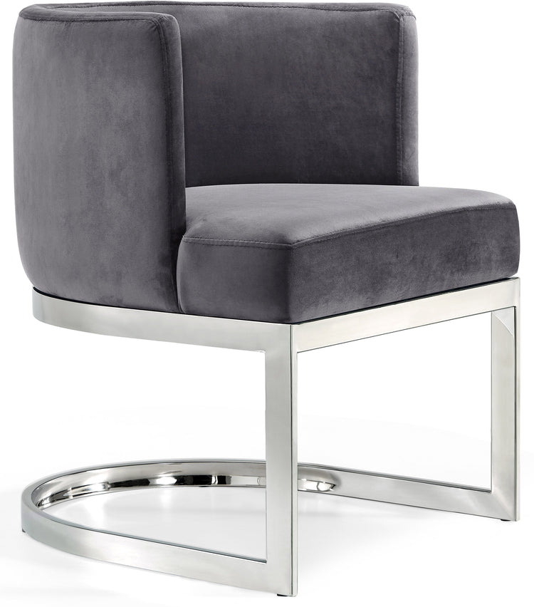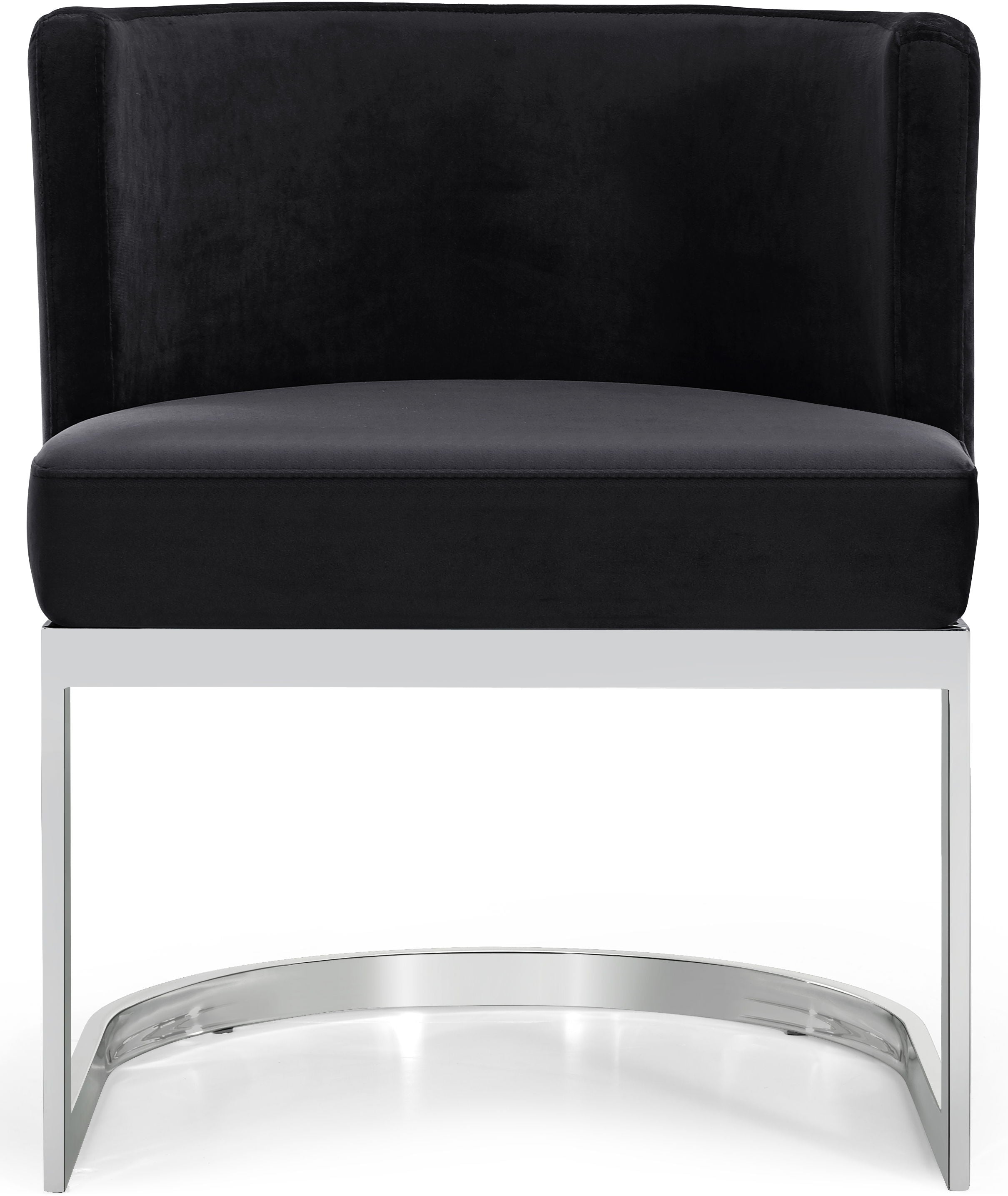 Lend your dining area a touch of retro charm with the Gianna velvet dining chair from Meridian Furniture. The back of the chair has a barrel design that cradles you in comfort while you enjoy a meal with friends, and the chair is thickly padded and upholstered in plush velvet for a luxe feel.