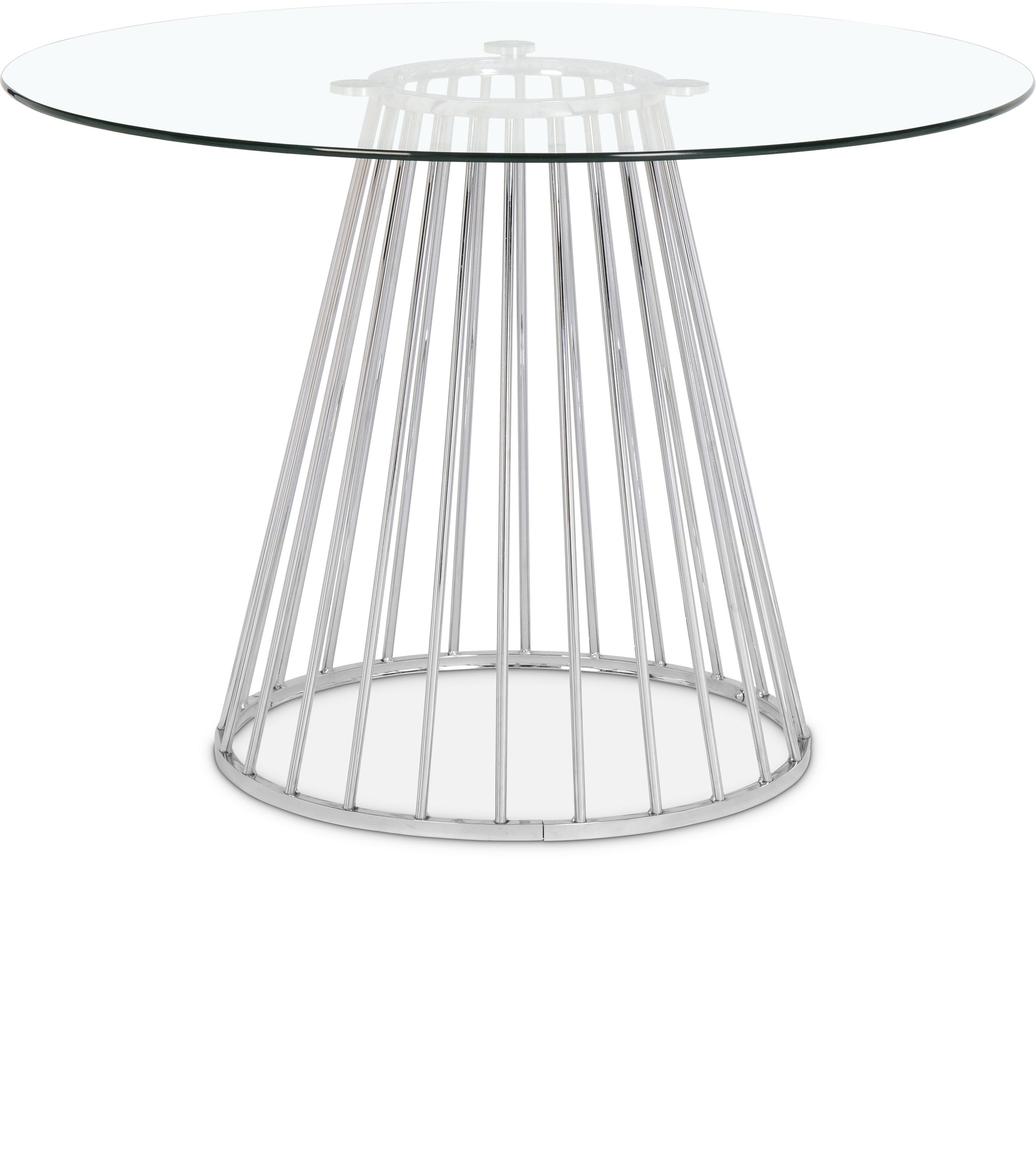 Add a bold touch to your dining area with this chic Gio dining table. Featuring a round, clear tempered glass tabletop and a polished metal base with a wired contemporary design, this dining table transforms your dining space into a stylish haven.