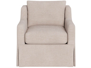 With a simple skirting detail and a softly curved body, the Grant Swivel Chair brings a casual-chic style to living spaces while offering premium relaxation with its versatile swivel base.