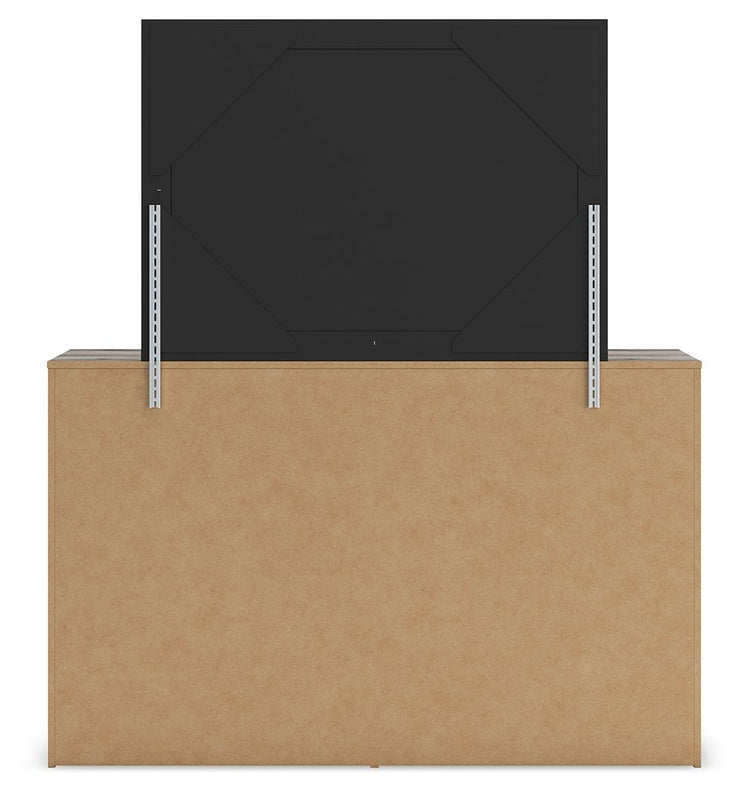 Combining a casual aesthetic with functional flair, this dresser with mirror suits styles from rustic to industrial. Its smooth-gliding drawers store everyday essentials with ease, from clothes to bed linens. Elongated drawer pulls in a dark hue polish off the look, harmonizing beautifully with the weathered gray wood grain.