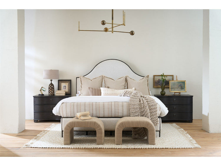 The Griffith Park Bed offers a sophisticated blend of classic and contemporary design. Its graceful silhouette and slender metal frame create a striking visual impact, while the upholstered headboard and footboard add a touch of luxurious comfort. This bed is the perfect choice for those seeking a refined and elegant bedroom aesthetic.