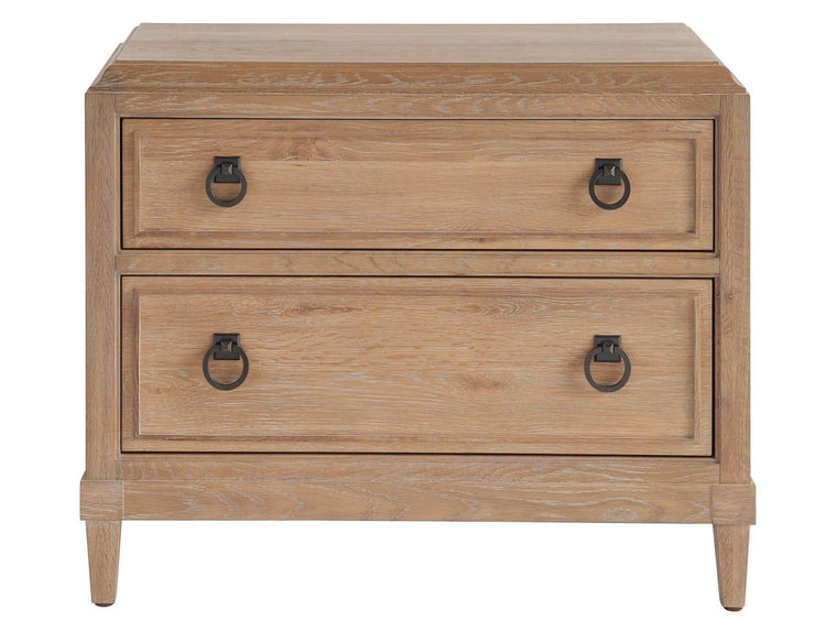 The Two Drawer Nightstand is a stylish and functional addition to any bedroom. Its clean lines and finish create a timeless appeal, while the two spacious drawers offer ample storage for your bedside essentials.