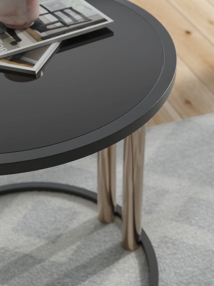 Round up a sleek, modern look with this table set. The rounded black glass tops offer the perfect perch for drinks, snacks or decor displays. Shapely brass-tone legs provide an eye-catching contrast to the matte black frames. Complete with a coffee table and two end tables, this sharp-looking table set easily complements other contemporary pieces.