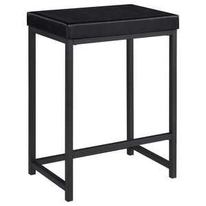 When space is at a premium, this modern four-piece counter height dining set does everything you need and more, easily serving as dining table, workspace, or homework spot. It features clean, crisp design with straight lines and square corners, all in a black finish that blends into surrounding decor in virtually any setting. The larger table includes a USB port in its top, while the smaller nesting table is on wheels that allow for easy movement to the perfect position for every occasion. Two stools are backless, with plush foam cushions and faux leather upholstery. Built in footrests offer added comfort and support for all to enjoy.