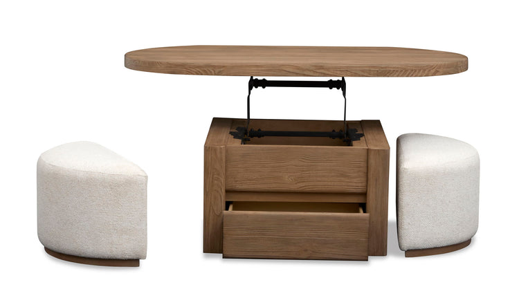 Hayden - Lift Top Storage Cocktail Table With Casters And Two Upholstered Stools - Golden Oat