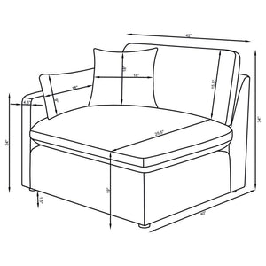 Complete your spacious modern living room with this beautifully designed modular sectional, featuring soft, textural fabric. Feather blend-wrapped box cushion seating with reversible cushions and topstitched details, paired with a thin track arm design, create a sleek, modern aesthetic to elevate your family room and beyond. Matching accent pillows and plush back cushions add extra comfort, nestled against the sloped track armrests. This sectional is perfect for complementing your existing decor, welcoming neutral tones, or providing a sophisticated backdrop to vibrant colors.