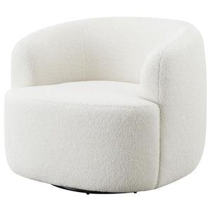 Curl up in comfort and style with this plush swivel accent chair, wrapped in soft faux sheepskin upholstery. Its rounded barrel-inspired silhouette and low backrest embrace you in cozy support, while the hidden swivel base allows a smooth 360-degree rotation for effortless movement. The tailored tight seat and sleek, minimalist profile add modern refinement, making it a versatile piece that complements any living room, bedroom, or reading nook with inviting warmth and timeless appeal.