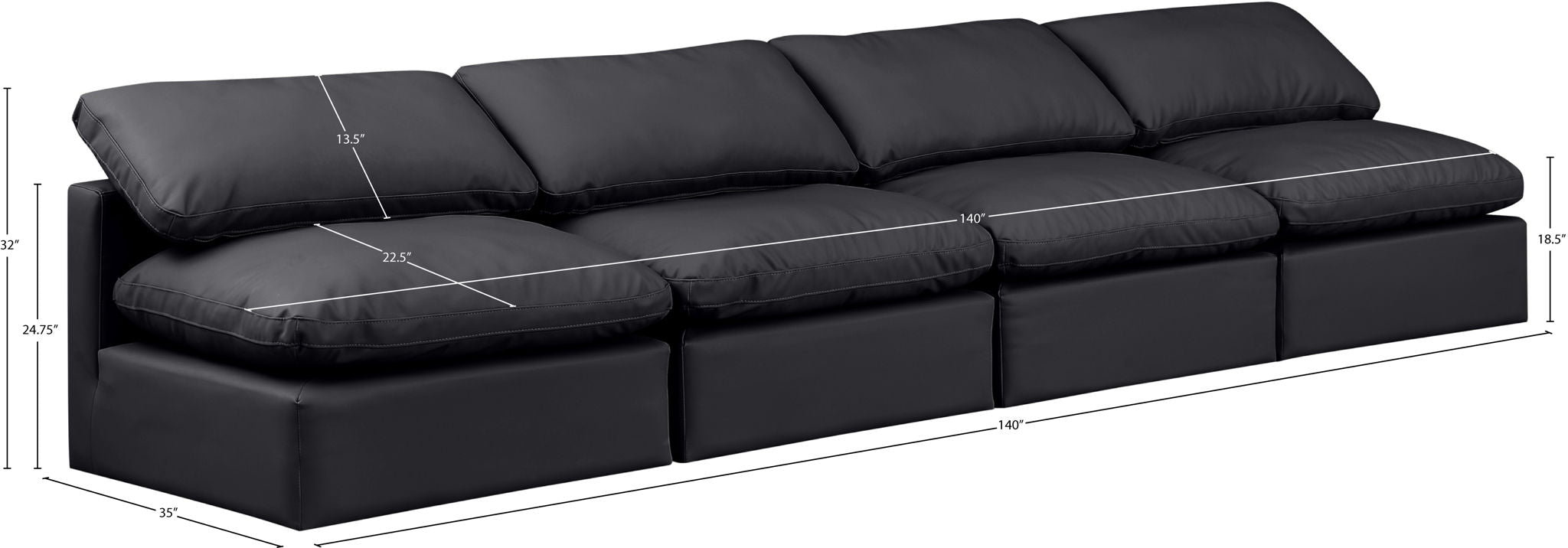 Indulge - Faux Leather 4 Piece Modular Armless Sofa - Black