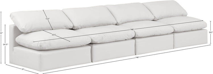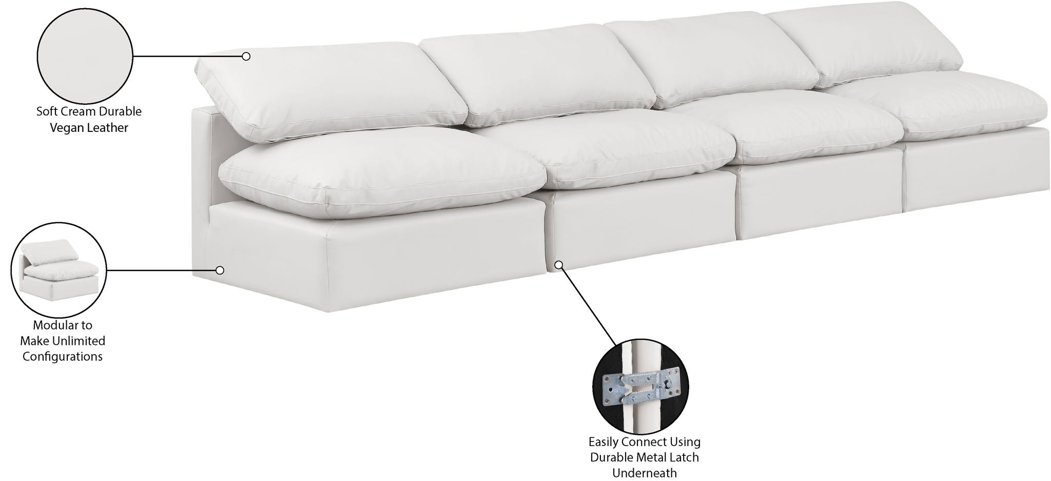 Indulge - Faux Leather 4 Piece Modular Armless Sofa - Cream