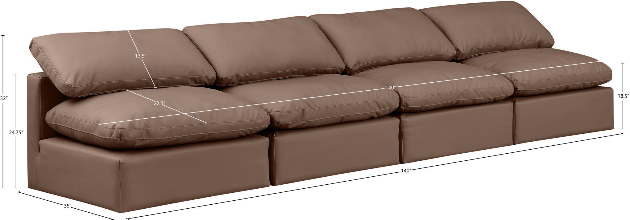 Indulge - Faux Leather 4 Piece Modular Armless Sofa - Brown