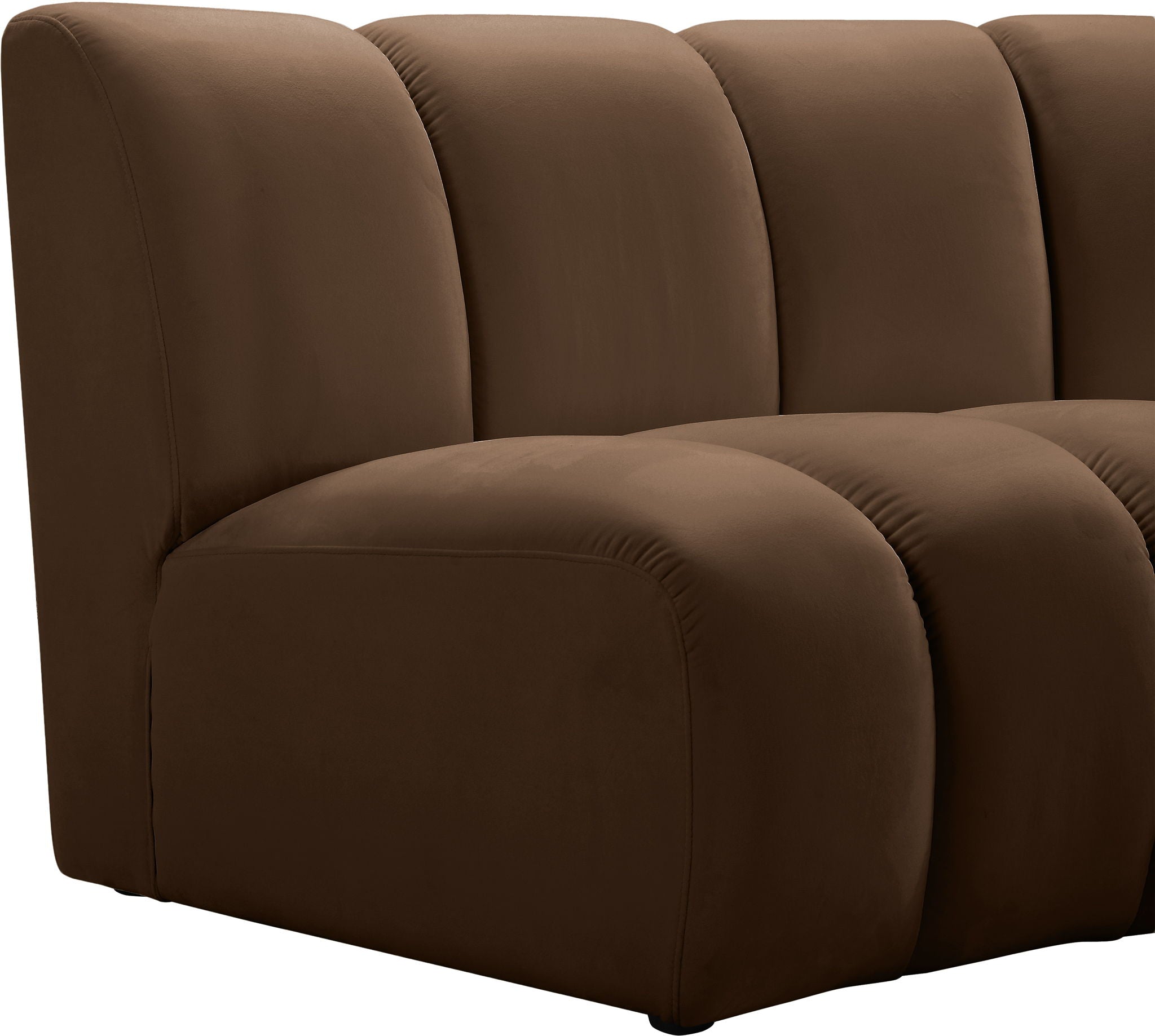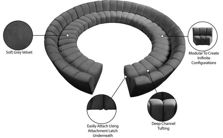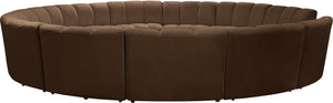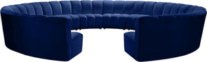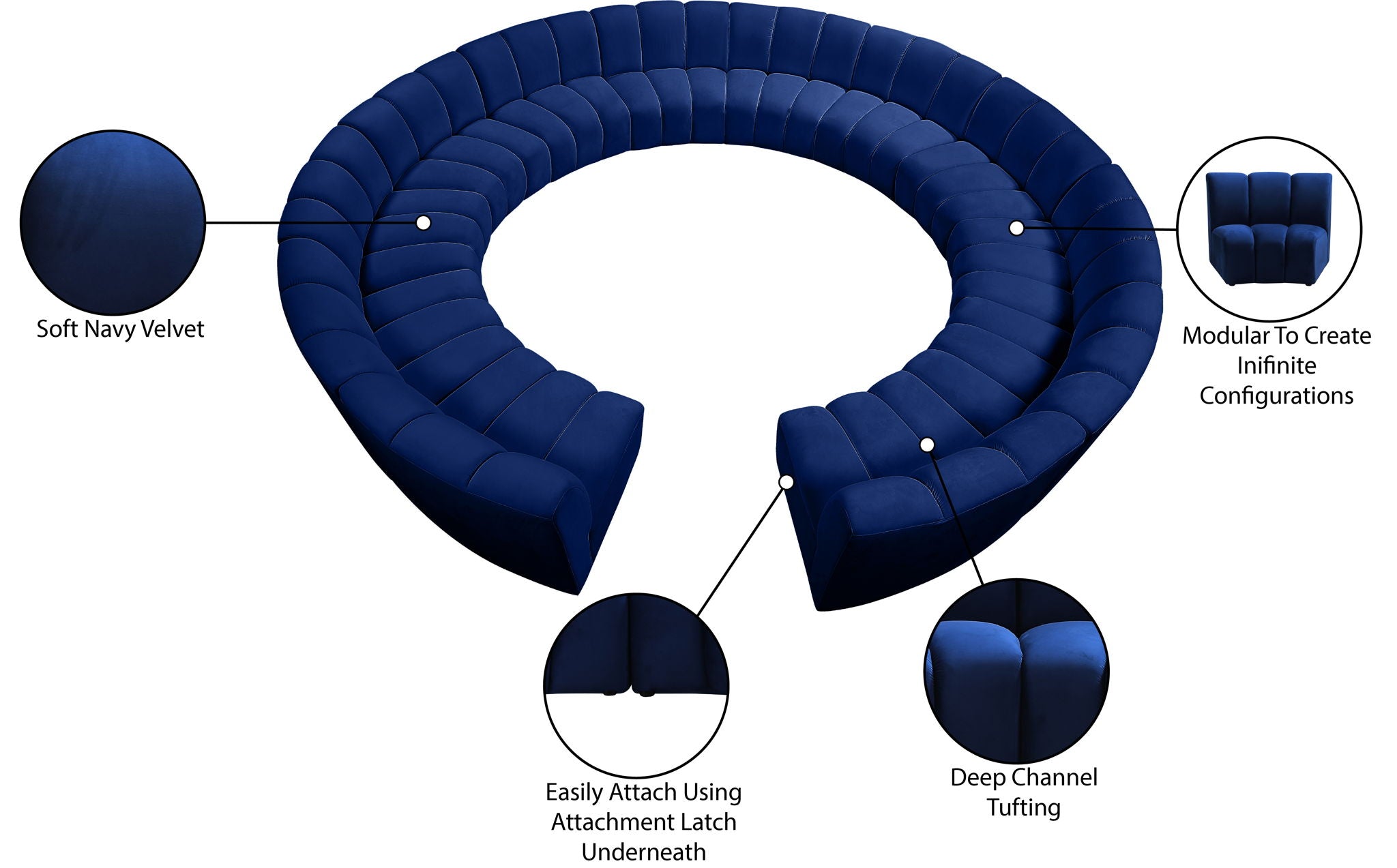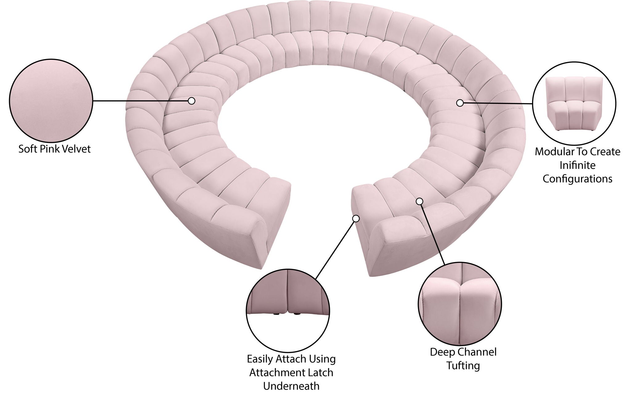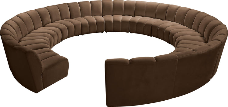 Create a seating group that works for every possible situation with this Infinity 12-piece sectional and other pieces in the Infinity collection. Upholstered in soft velvet material that feels great against the skin and offers long-wearing beauty, this piece fits with other Infinity items for an infinite number of combinations that get your seating requirements just right but that look just as nice when used on their own.