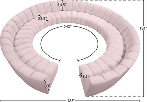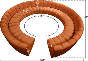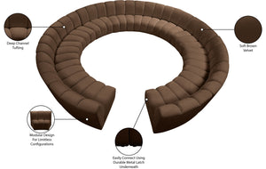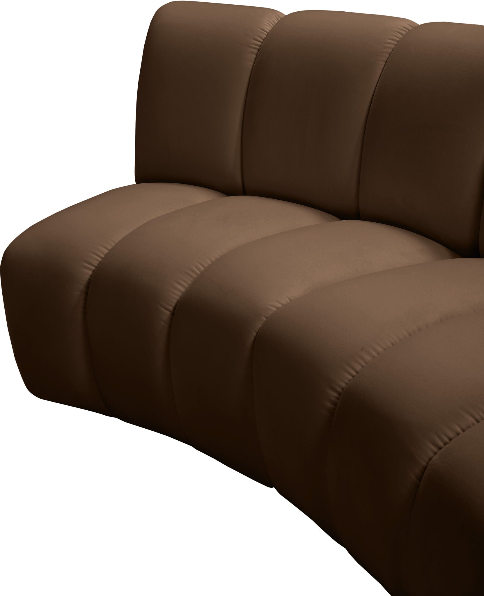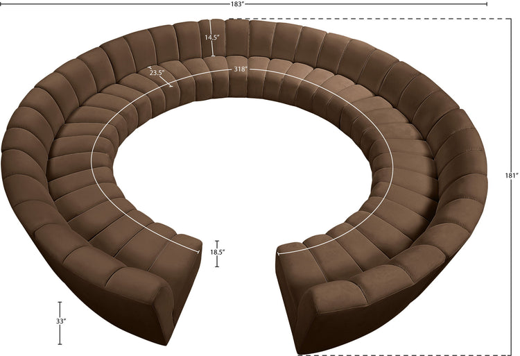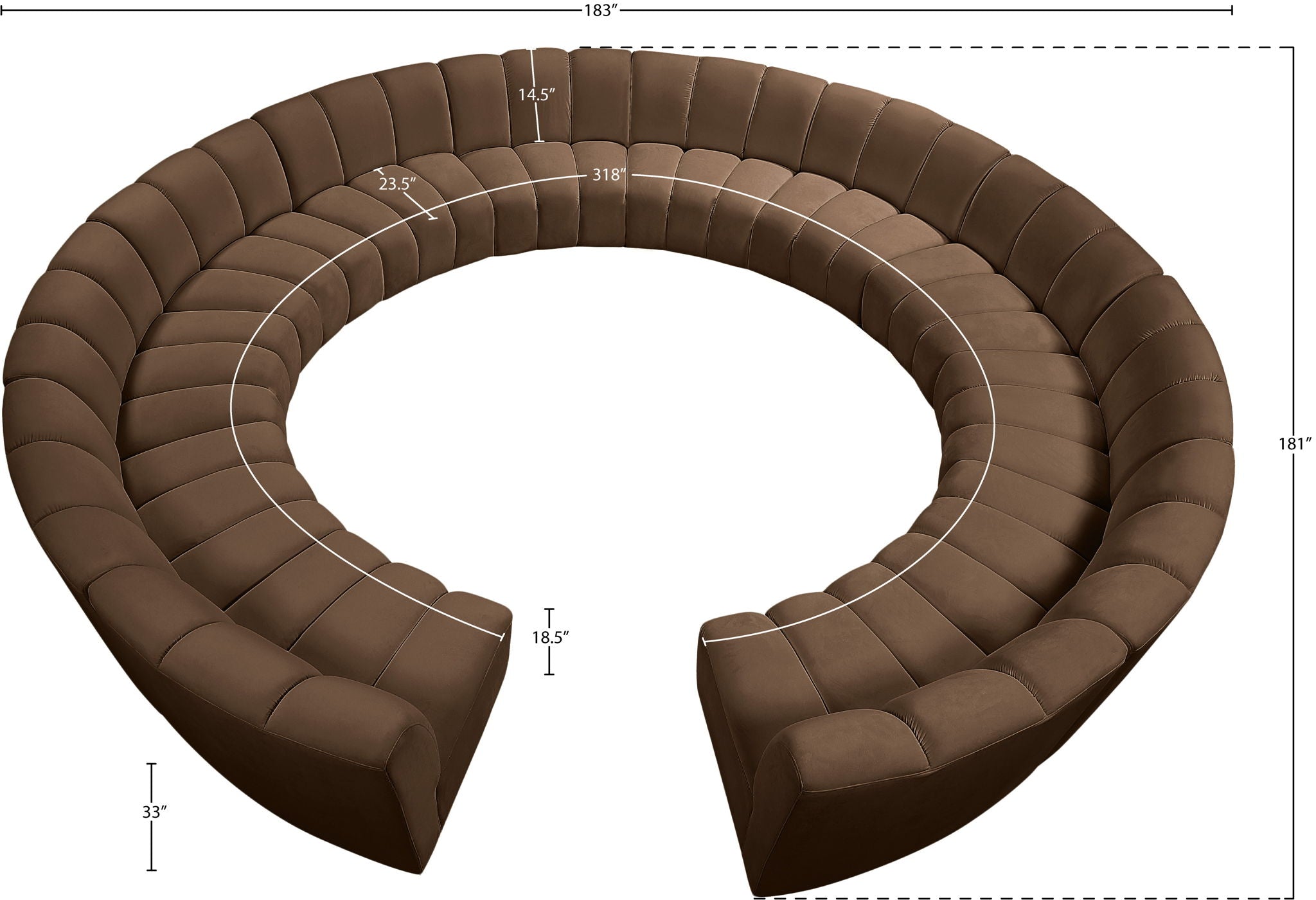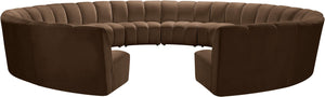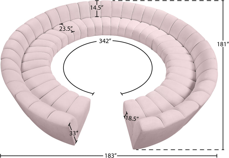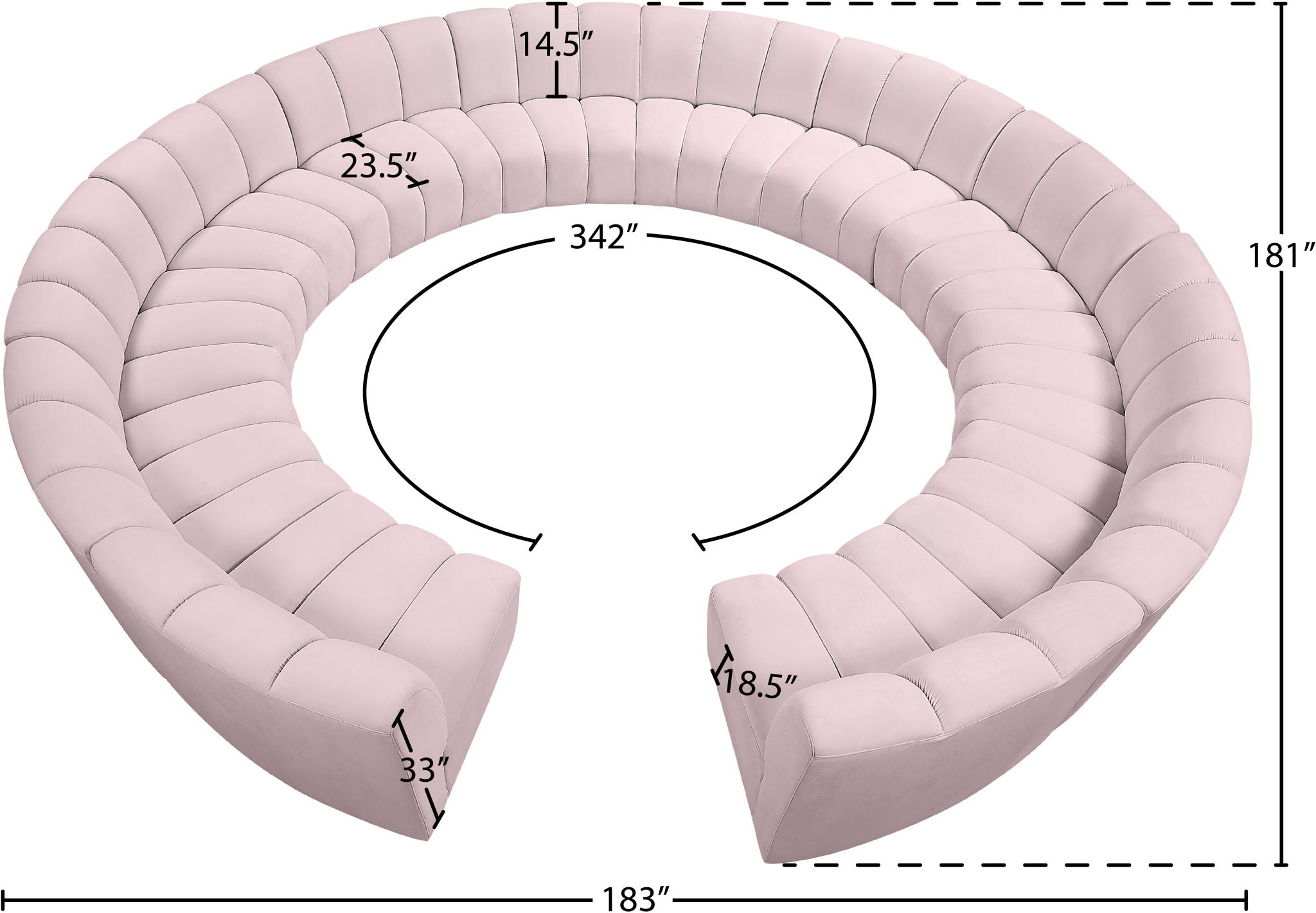 Create a seating group that works for every possible situation with this Infinity 12-piece sectional and other pieces in the Infinity collection. Upholstered in soft velvet material that feels great against the skin and offers long-wearing beauty, this piece fits with other Infinity items for an infinite number of combinations that get your seating requirements just right but that look just as nice when used on their own.