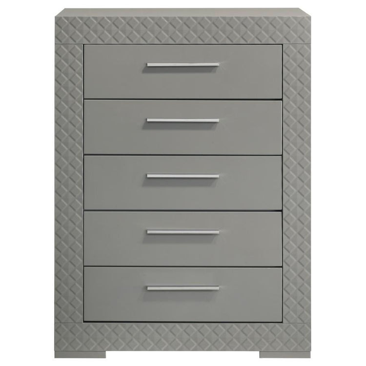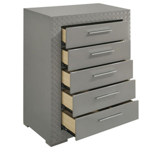 Ives - 5-Drawer Bedroom Chest Of Drawers - Gray High Gloss