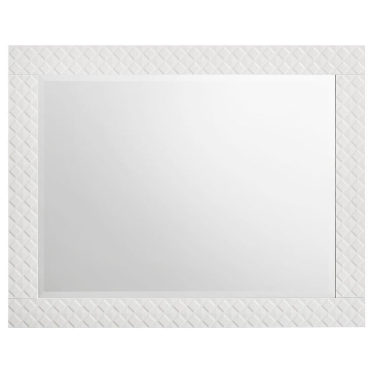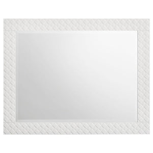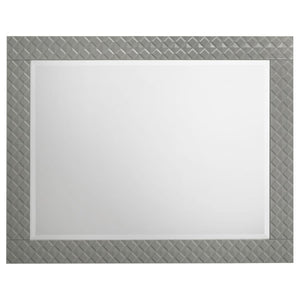 Complete your dresser with this elegant mirror, designed to enhance the modern aesthetic of your bedroom. The high gloss finish and 3-dimensional diamond tile emboss perfectly complement the dresser, creating a cohesive look. This mirror features a sturdy frame crafted from solid materials, ensuring both style and durability. Its generous size offers ample reflection, making your space feel larger and brighter. This mirror is the perfect finishing touch to elevate your bedroom decor.