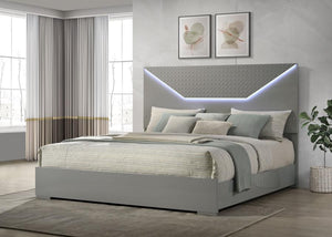 Ives - Eastern King Panel Bed LED Headboard - Gray High Gloss