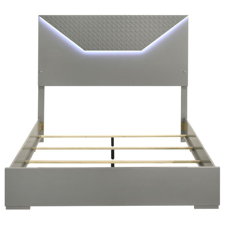 Ives - Queen Panel Bed LED Headboard - Gray High Gloss