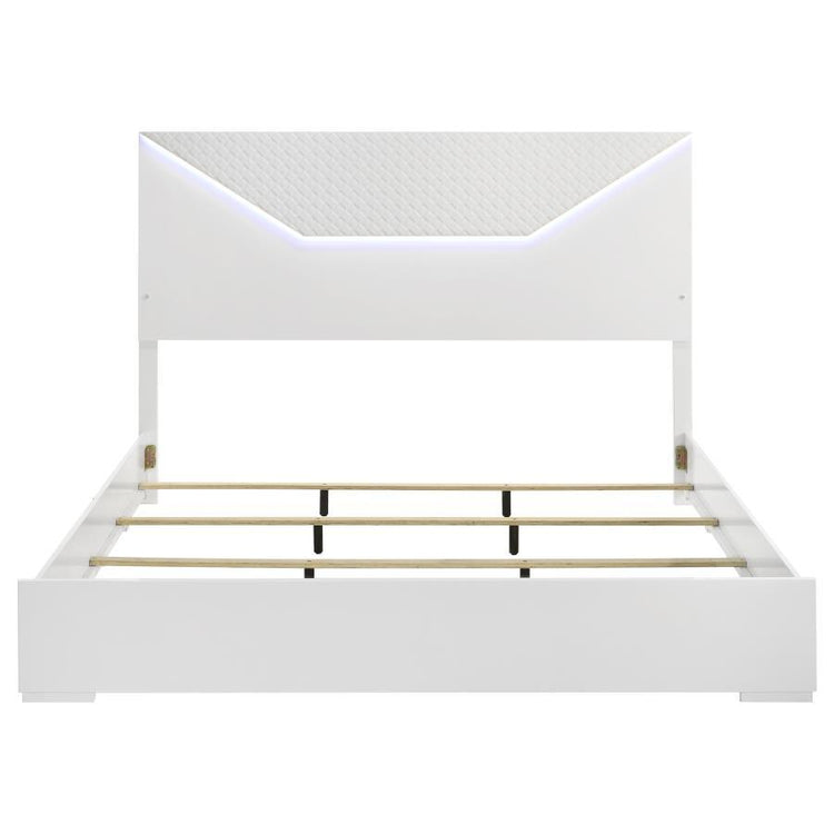 Ives - Queen Panel Bed LED Headboard - White High Gloss