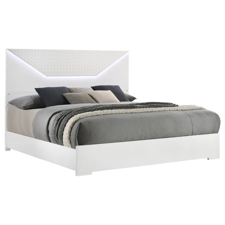 Ives - Eastern King Panel Bed LED Headboard - White High Gloss