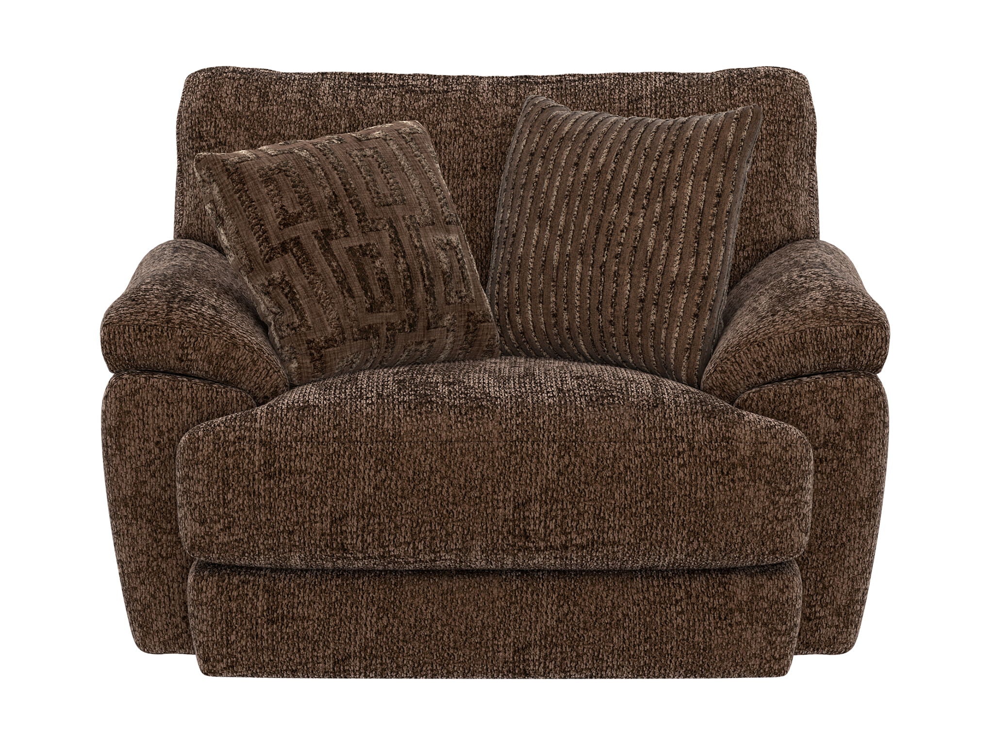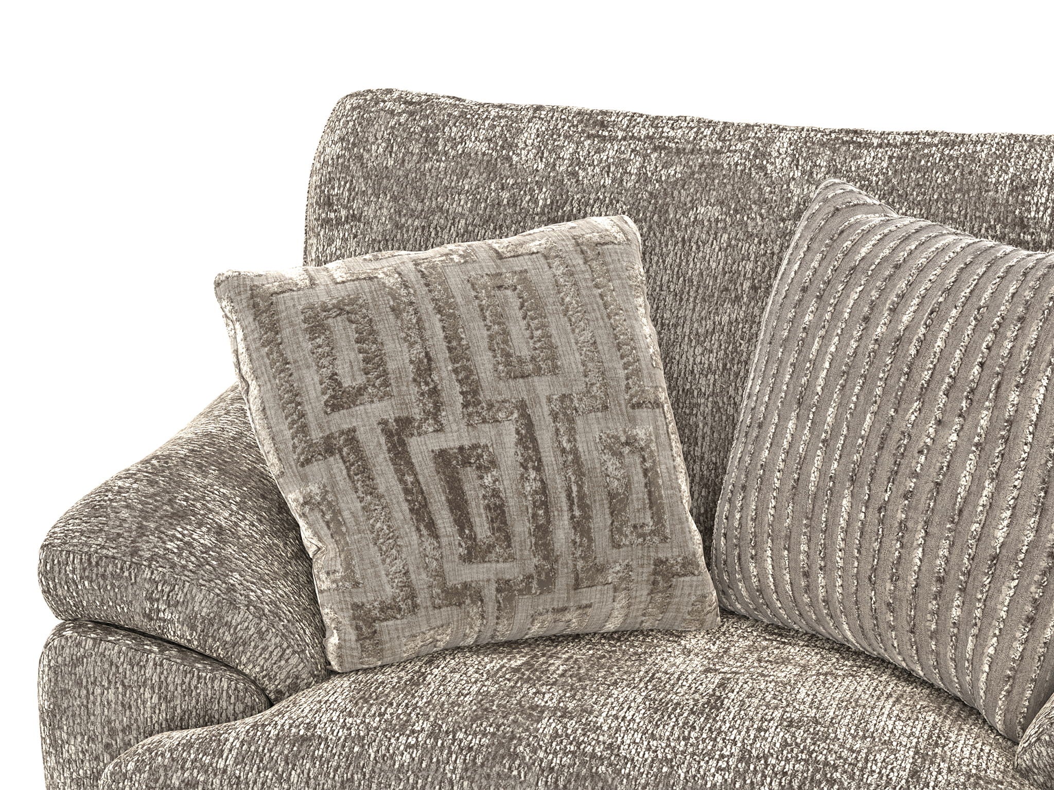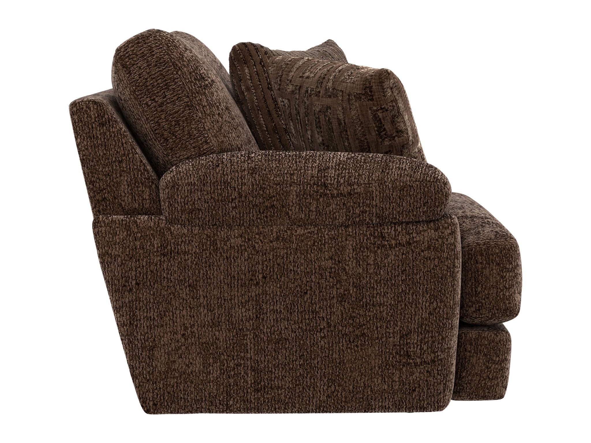 Jaden is a large two-seater design with contemporary pillow-arms in a soft yet durable chenille fabric. With the ultimate comfort of our Cuddler Cushion, a variety of toss pillows in complementary colors complete the comfort package.