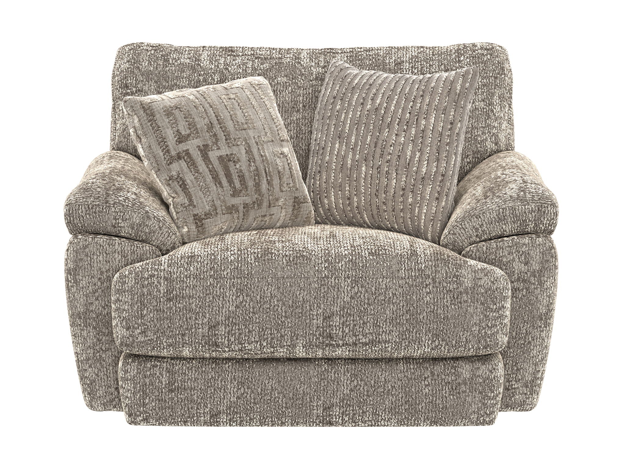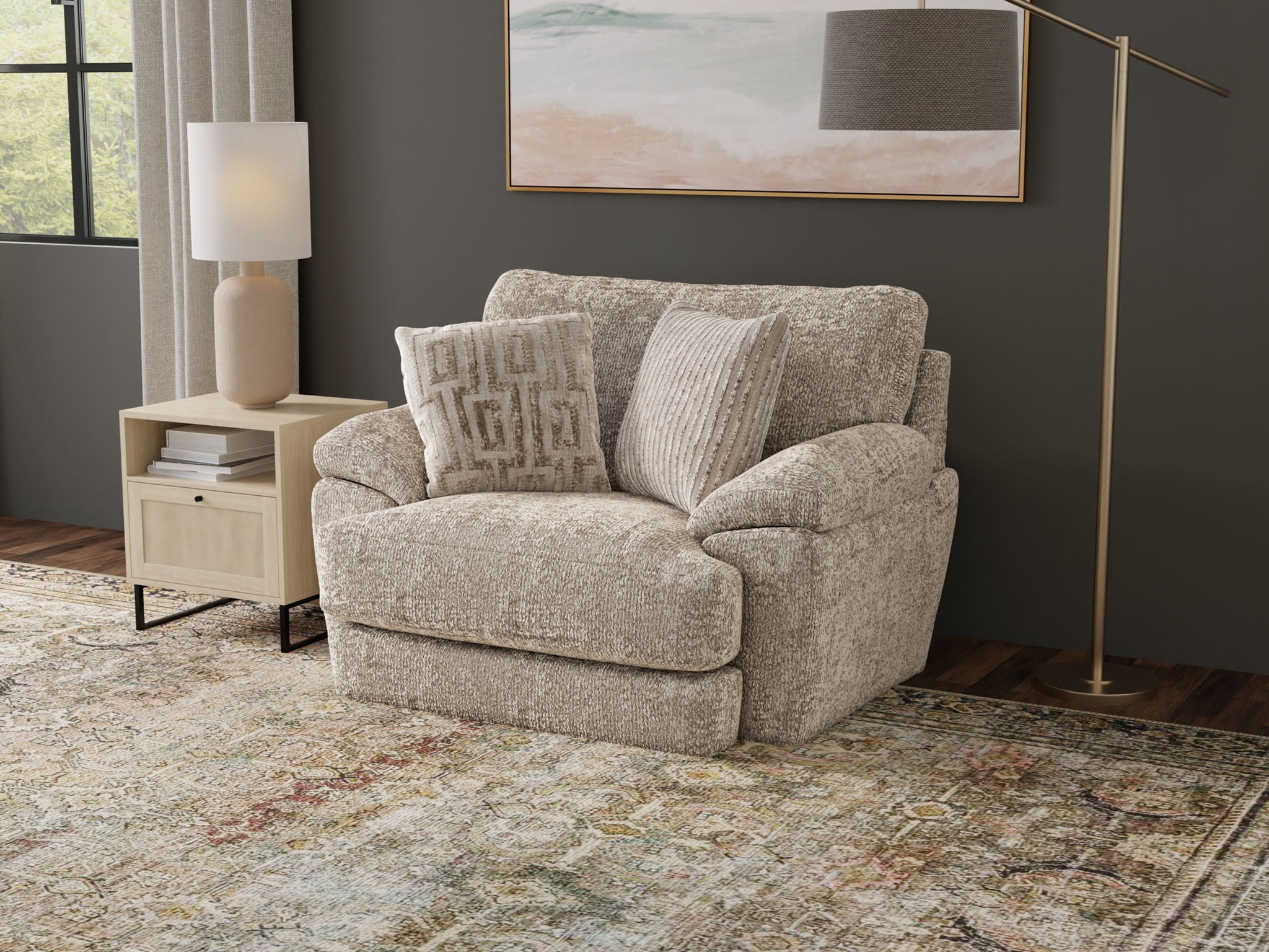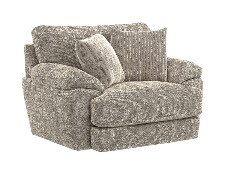 Jaden is a large two-seater design with contemporary pillow-arms in a soft yet durable chenille fabric. With the ultimate comfort of our Cuddler Cushion, a variety of toss pillows in complementary colors complete the comfort package.
