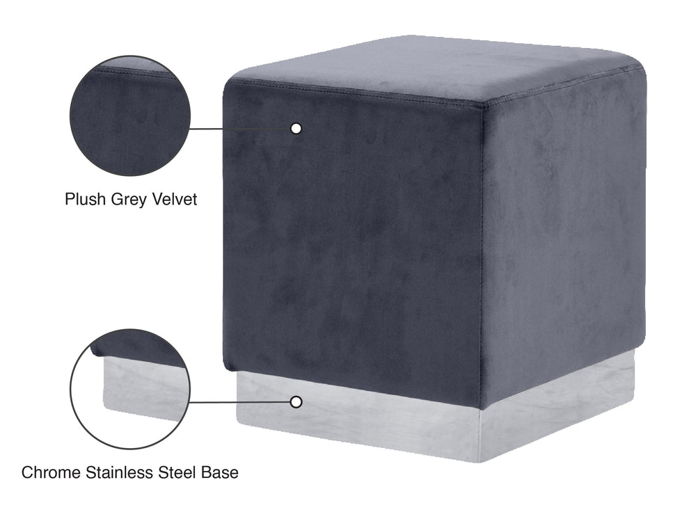 Get back to basics with a contemporary twist when you add the handsome Jax Ottoman/Stool to the mix. The velvet upholstery is nothing short of stunning and covers every inch of the ottoman with the exception of the contrasting stainless steel base. Your choice of fashionable colors makes it easy to pair this stool with your existing seating group in the living room or den or add a splash of excitement to a bedroom or dressing area.