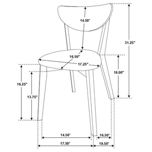 As part of the Malone Collection, this modern dining chair is right at home with the modern dining table from the same set. Gently curved back is perfect for contemplating over a morning cappuccino. Cushioned seating upholstered in elegant black leatherette. Walnut leg finish is warm and inviting. Wide-angled legs offer support while reflecting over an evening single malt.