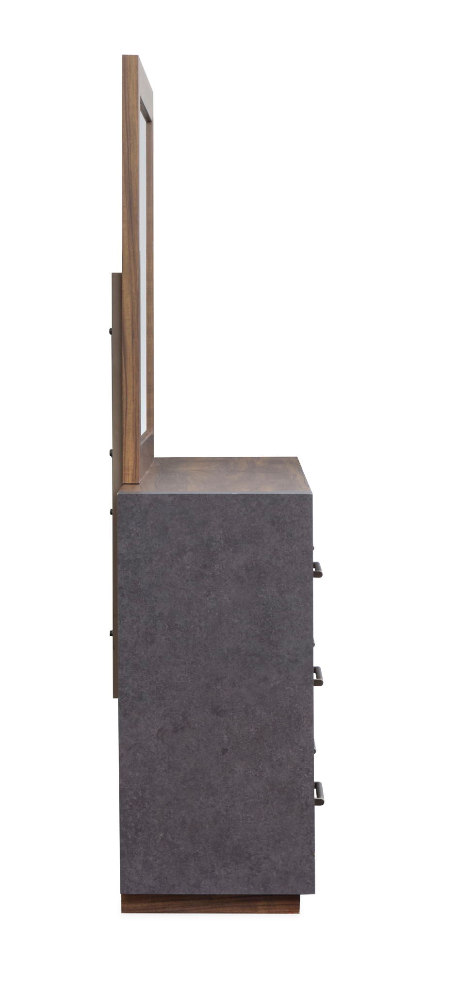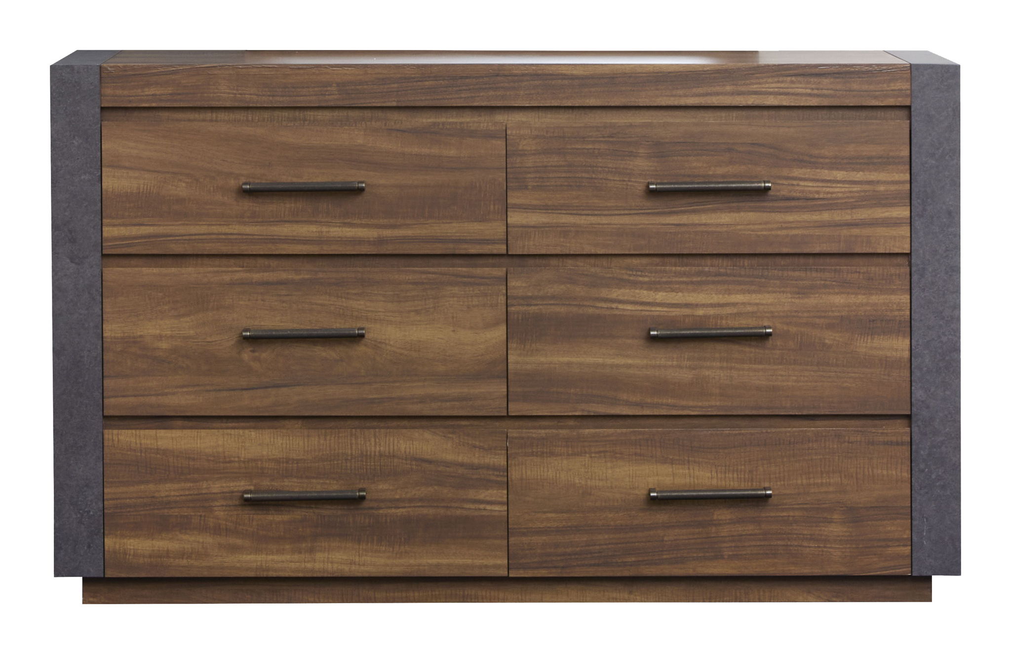 The Jensen Collection embodies the raw and edgy appeal of modern industrial style and featuring a Tavern Brown finish paired with Verona Bronze hardware for a rugged and utilitarian look. The casegoods showcase the perfect balance of wood and aged metal laminate and creating a striking mixed-media effect with bold and masculine lines. Set-back rails on the case fronts enhance the industrial aesthetic and adding depth and visual interest. Perfect for those seeking a bold and industrial-inspired retreat and the Jensen Collection will bring a dynamic and modern edge to your bedroom.