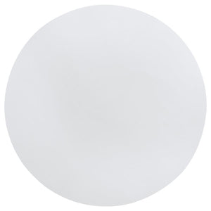 Freshen up your breakfast nook with the clean, modern presentation of a round dining table. It's a simple, engaging look that features a roomy round tabletop and a cool white finish. The table boasts a square edge and stands on flared legs unified with a single round shelf. The shelf is an easy spot for decor or essentials and creates a cohesive look and feel. Legs feature subtle ribbing that adds texture and dimension.