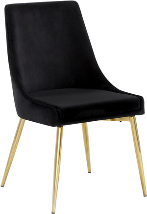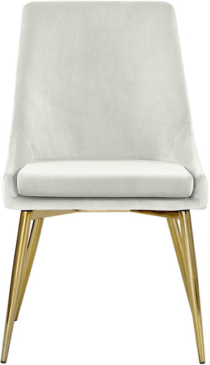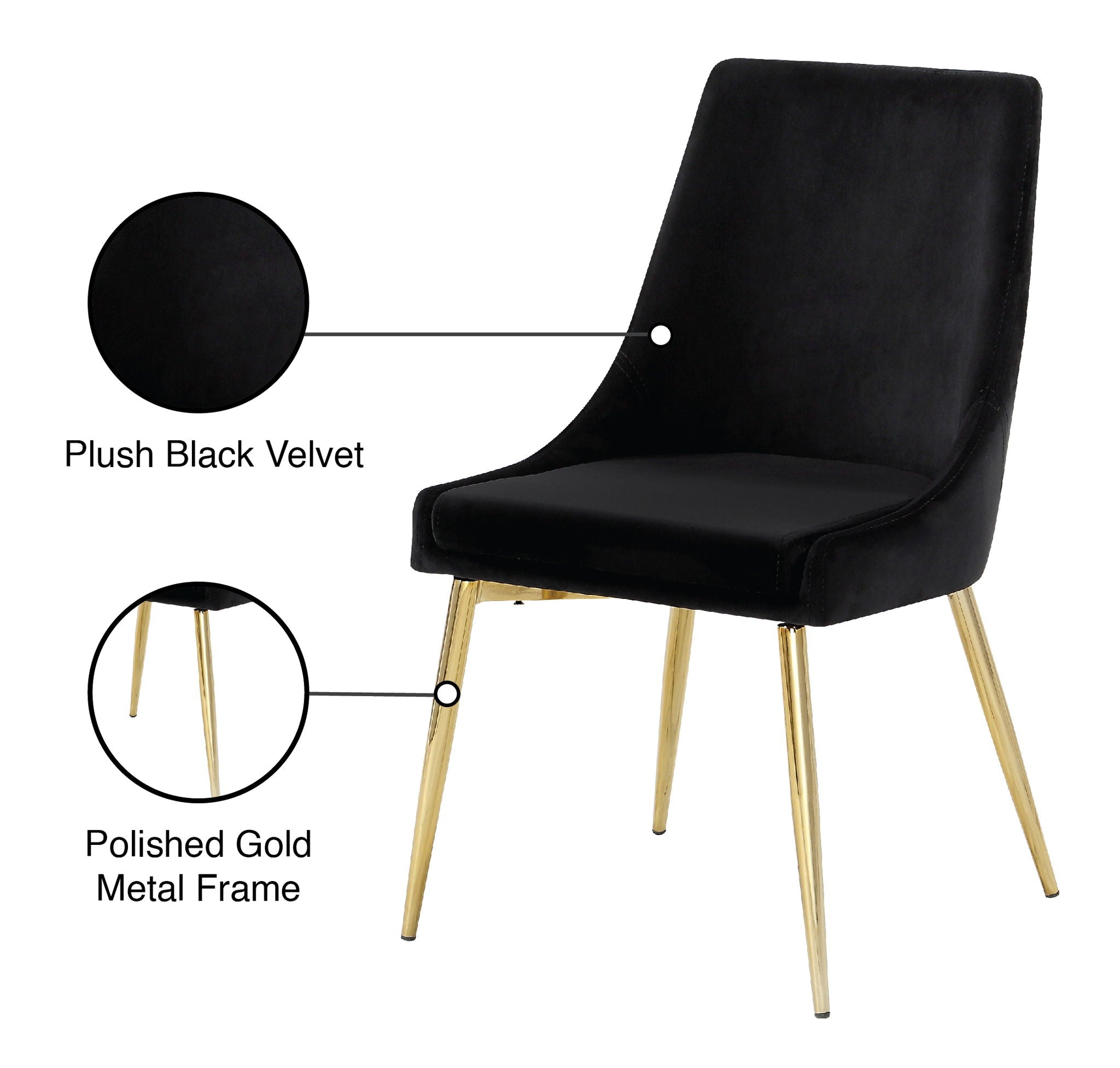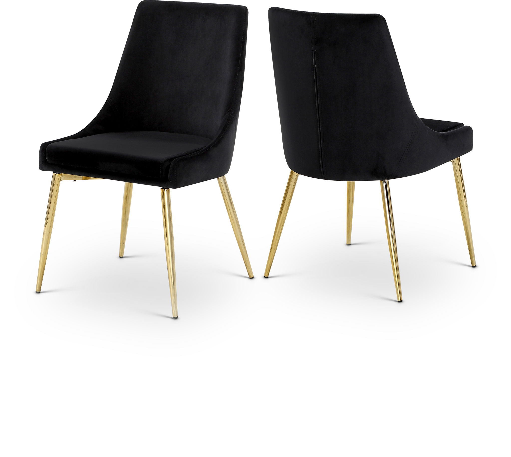 Extend contemporary panache to the dining room with this Karina Dining Chair. This dining chair features upholstery in sleek velvet for a modern look and has an armless design for a retro-inspired vibe. The stark color makes it easy to blend in with your existing decor colors or make a contrasting statement with ease. The slanted legs of this chair are finished for added modernity and to provide reliable and durable support while you dine.