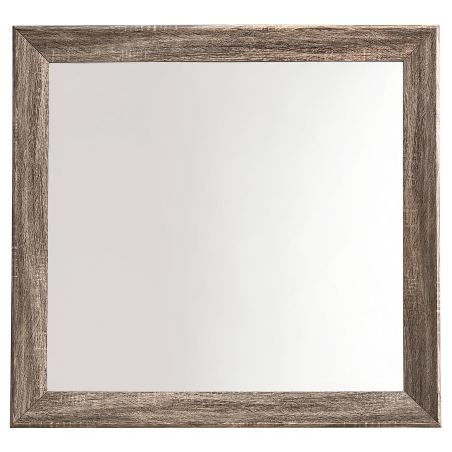 This bedroom set from the Kauffman Collection draws the eye with rich wood in a washed taupe finish, each panel standing out thanks to contrasting accents.