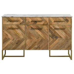 Keaton - 3-Door Marble Top Herringbone Accent Cabinet - Natural