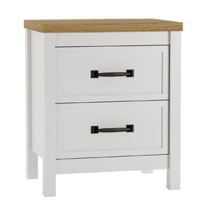 For style that’s simultaneously relaxed and refined, look no further than this nightstand. Its crisp, clean white finish pairs with replicated oak for a versatile look with loads of casual appeal. Contrasting hardware with a simple dark hue incorporates added depth. Smooth-gliding drawers, complete with a matching white finish inside, deliver everyday convenience.