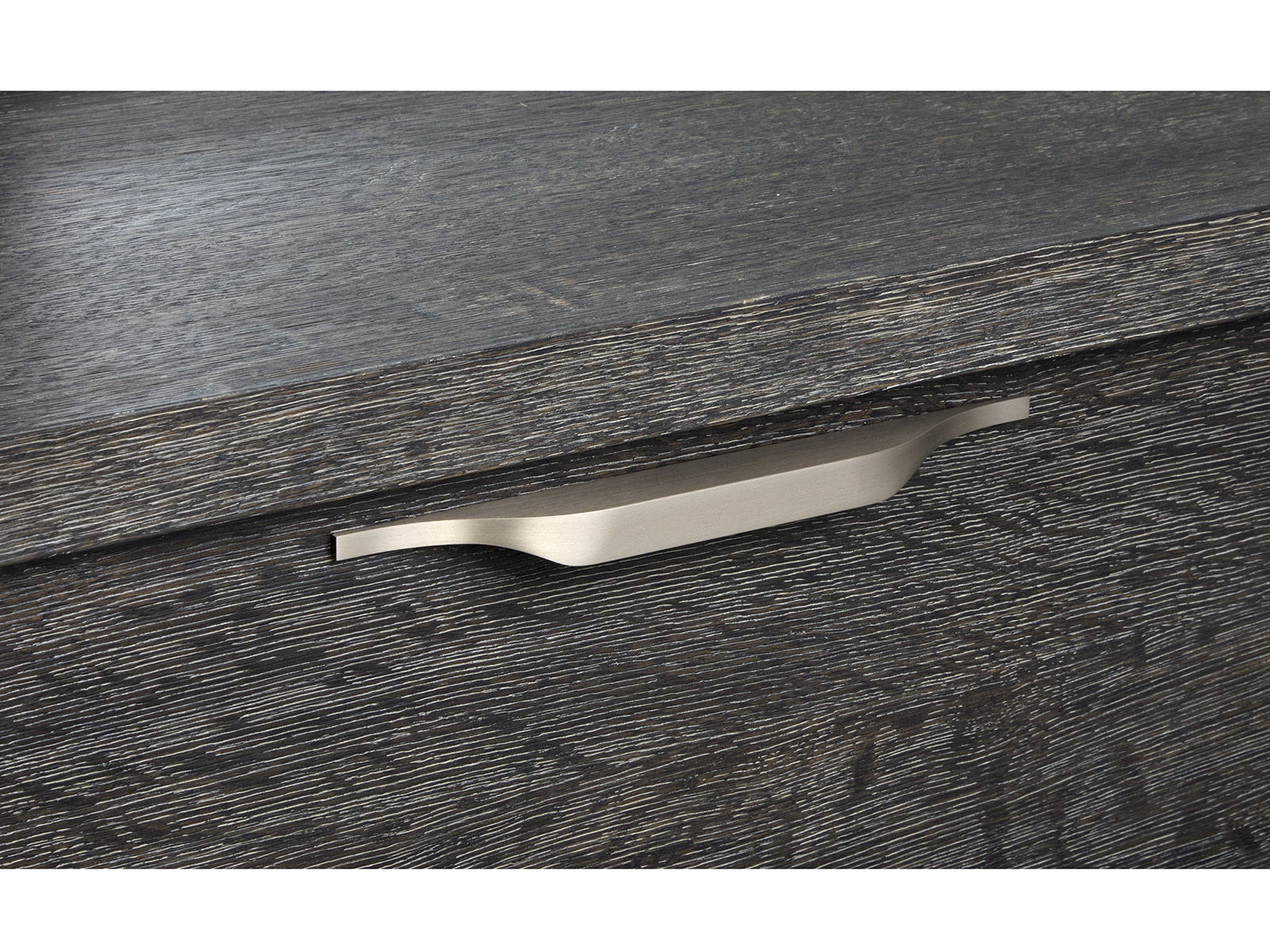 Introducing Kinsley and a striking centerpiece for any modern contemporary home. This collection features sleek and clean lines and practical functionality that blend seamlessly with its stylish design. The Black Heron finish and complemented by Oslo Pewter fabric and Satin Nickel hardware and adds a touch of elegance and sophistication. Its contemporary style makes it an ideal fit for minimalist and chic interiors and enhancing the overall aesthetic of your living space. Crafted from random flip and slip flakey oak veneer hardwood solids and the Kinsley promises both durability and refined beauty.