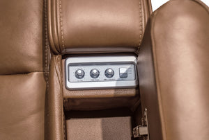 Knightington - Power Reclining Loveseat With Audio Console - Caramel