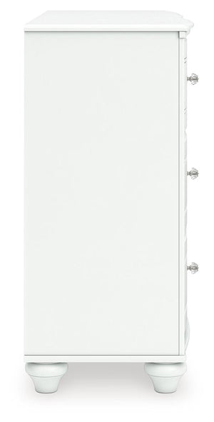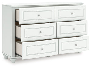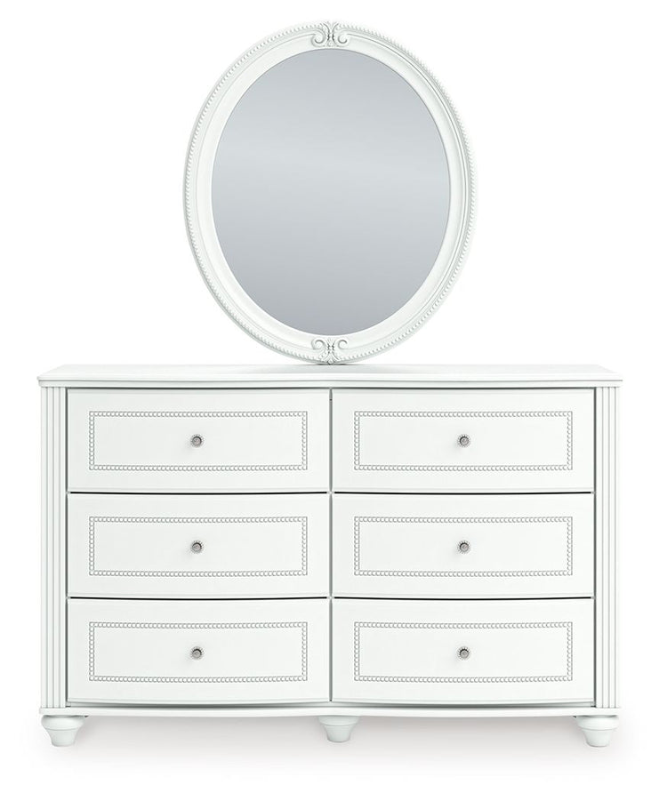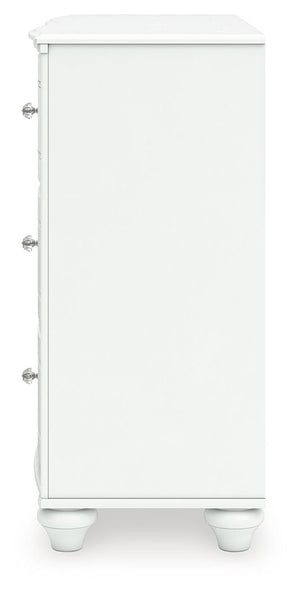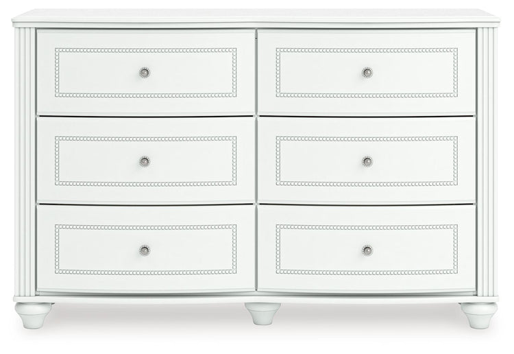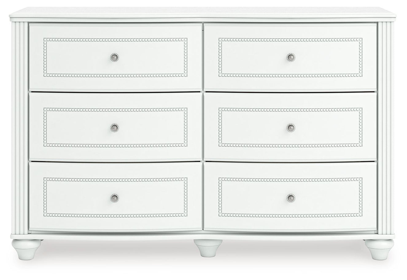 Fit for a princess. This dresser’s crisp matte finish pairs with charming elements like bun feet, crystal knobs and ornate beading—the perfect crowning touches for your girly girl. This spacious six-drawer piece is sure to make your little one feel like royalty.