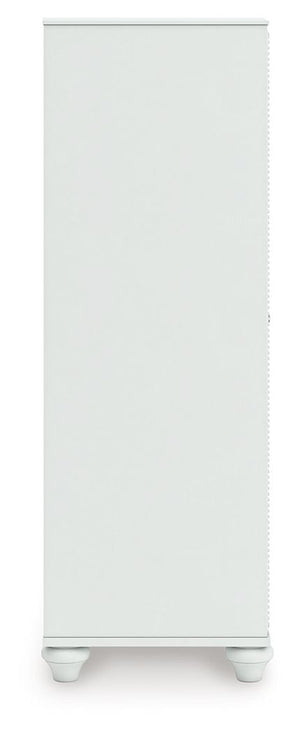 Fit for a princess. This dressing chest’s crisp matte white finish pairs with charming elements like a mirrored door, bun feet and crystal knobs—the perfect crowning touches for your girly girl. Hidden shelves keep toys within easy reach, making your little one feel like royalty.