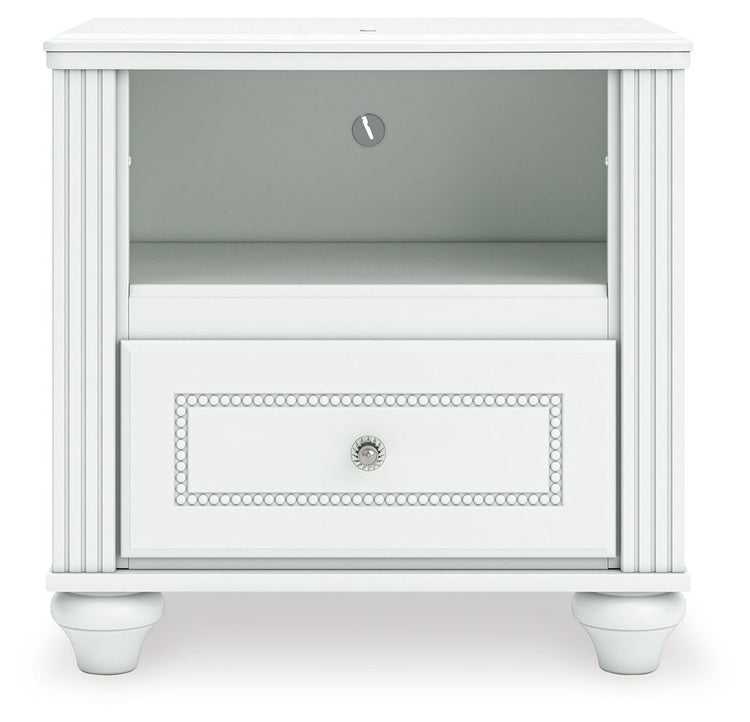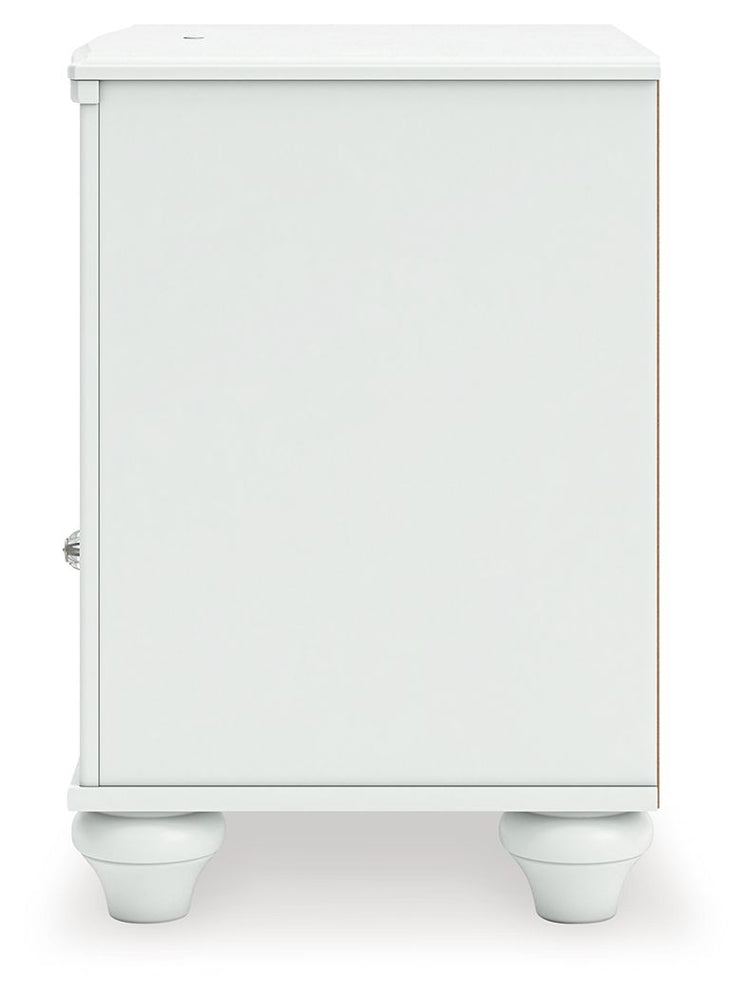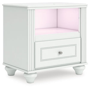 Fit for a princess. This nightstand’s crisp matte white finish pairs with charming ornate beading details and bun feet—perfect for your girly girl. Multicolored LED lighting and built-in USB charging are the crowning touches to make your little one feel like royalty.