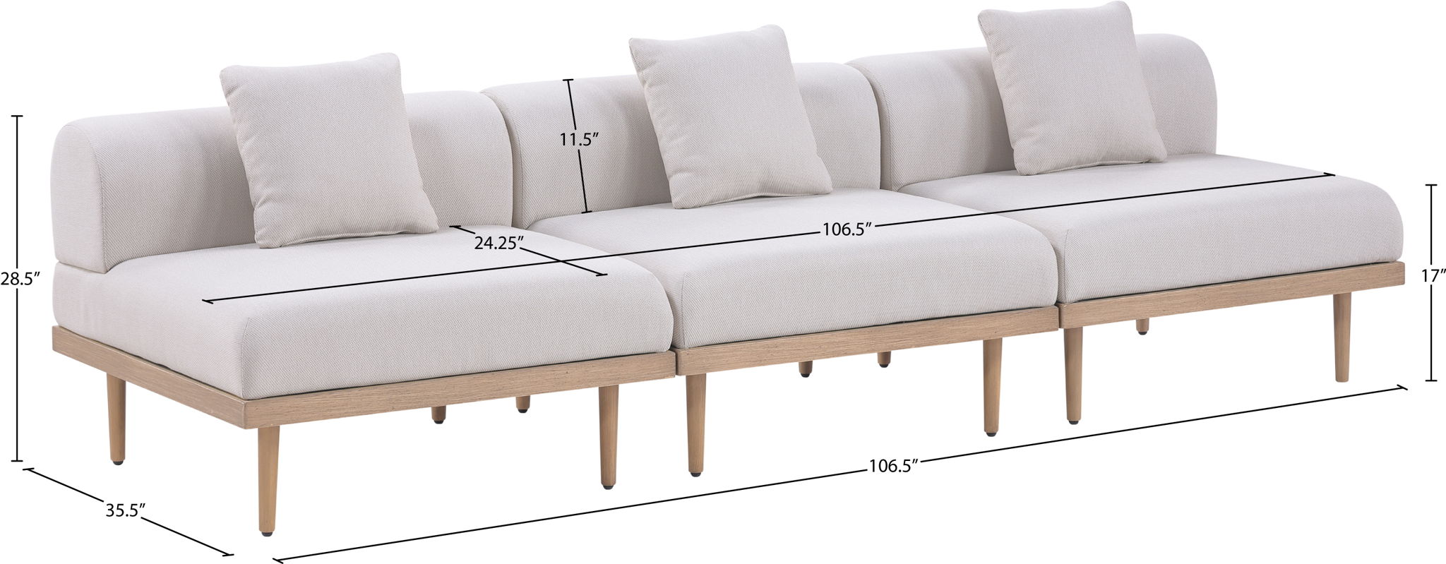 Laguna - 3 Piece Resilient Water Resistant Fabric 106.5" Outdoor Patio Armless Modular Sofa