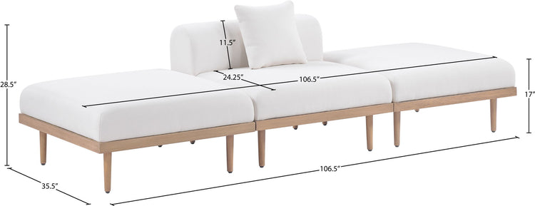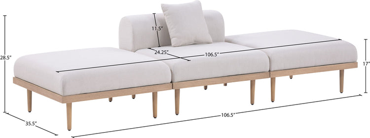 Laguna - 3 Piece Water Resistant Fabric 106.5" Upholstered Outdoor Patio Modular Sofa - Cream