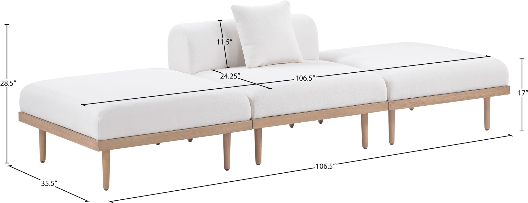106.5"W x 35.5"D x 28.5"H - 145.0 lb